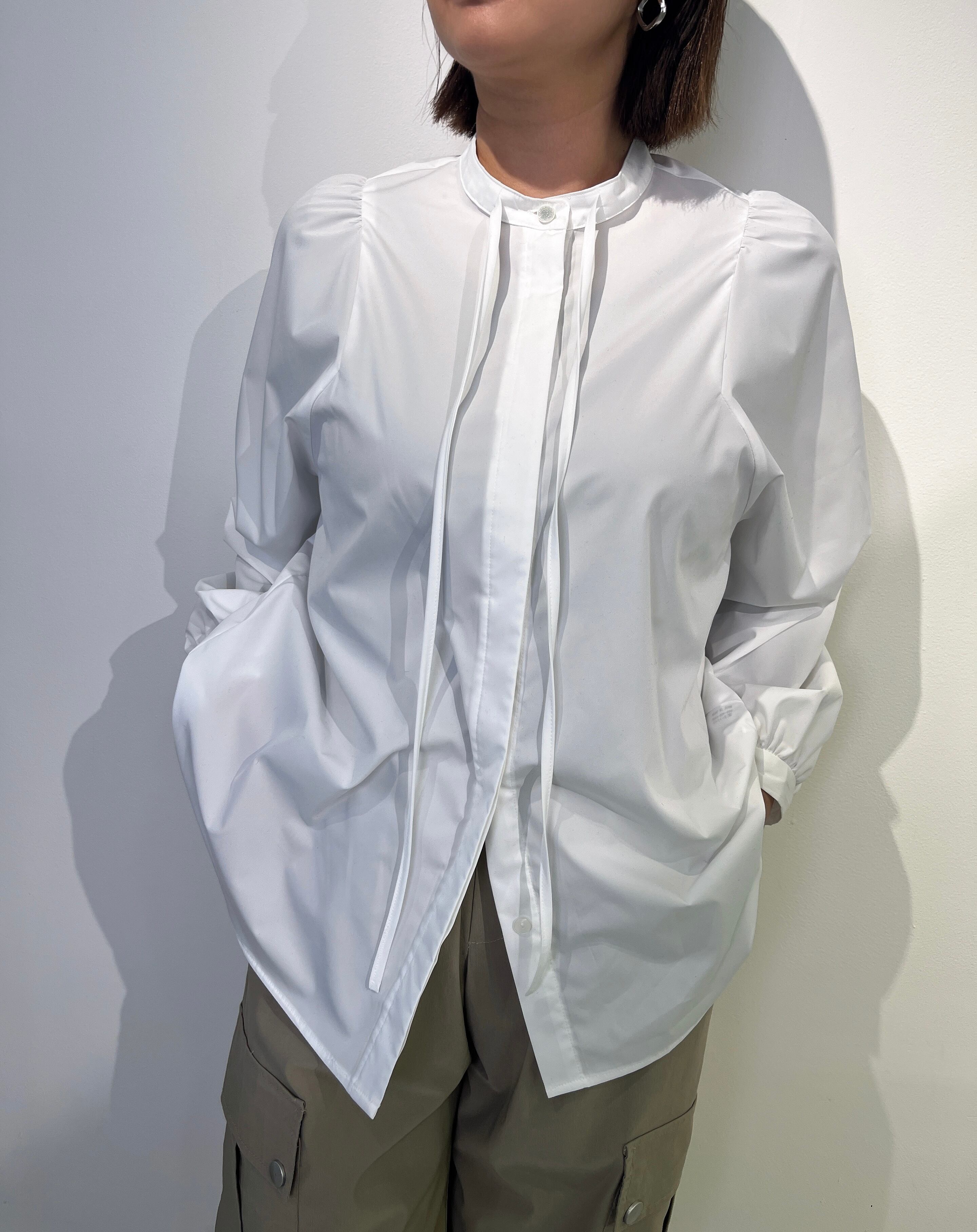 肩を華奢に見せてくれる、ギャザーショルダーのブラウス。