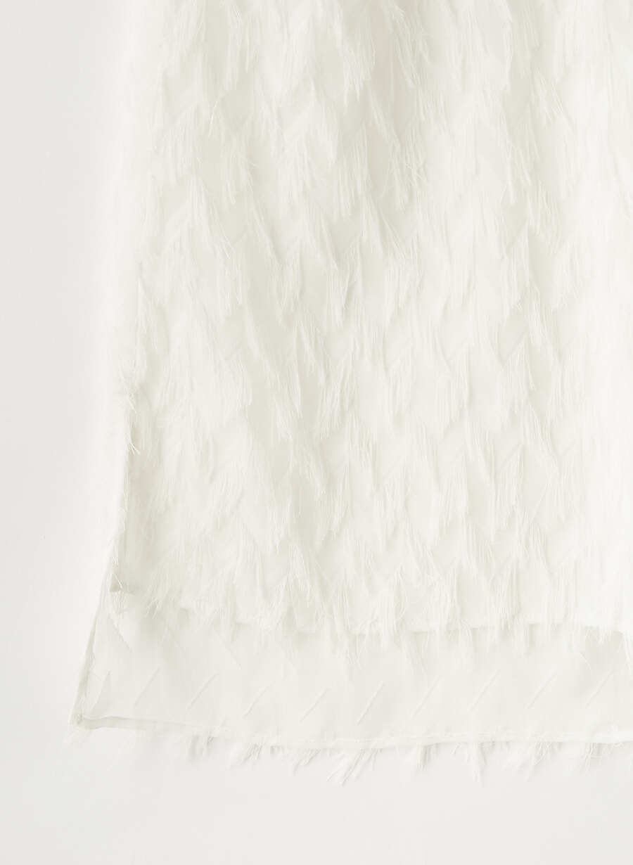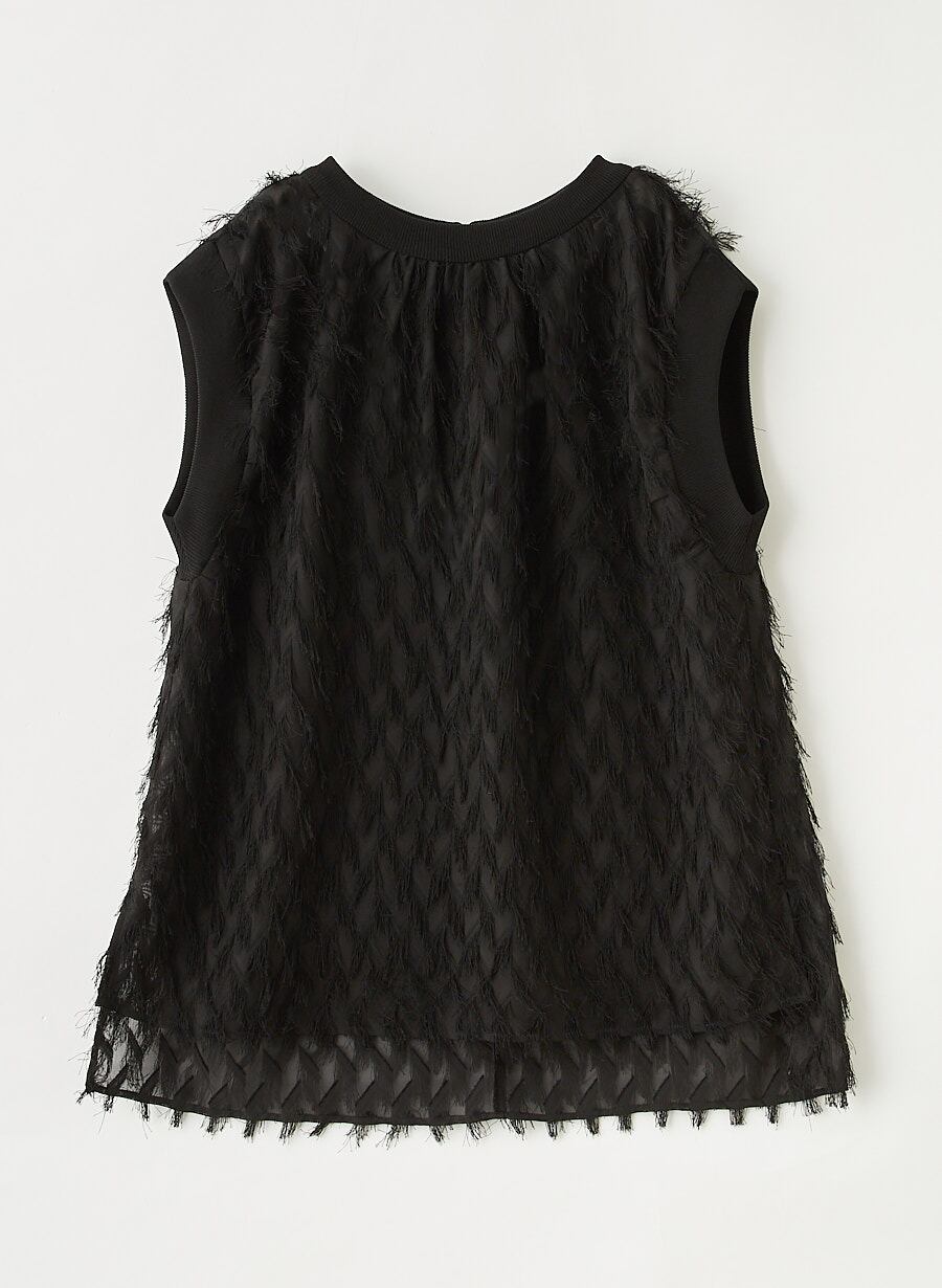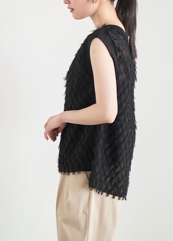 ・トレンドのフリンジの様な表面感をカットジャカードで表現した素材を使用。