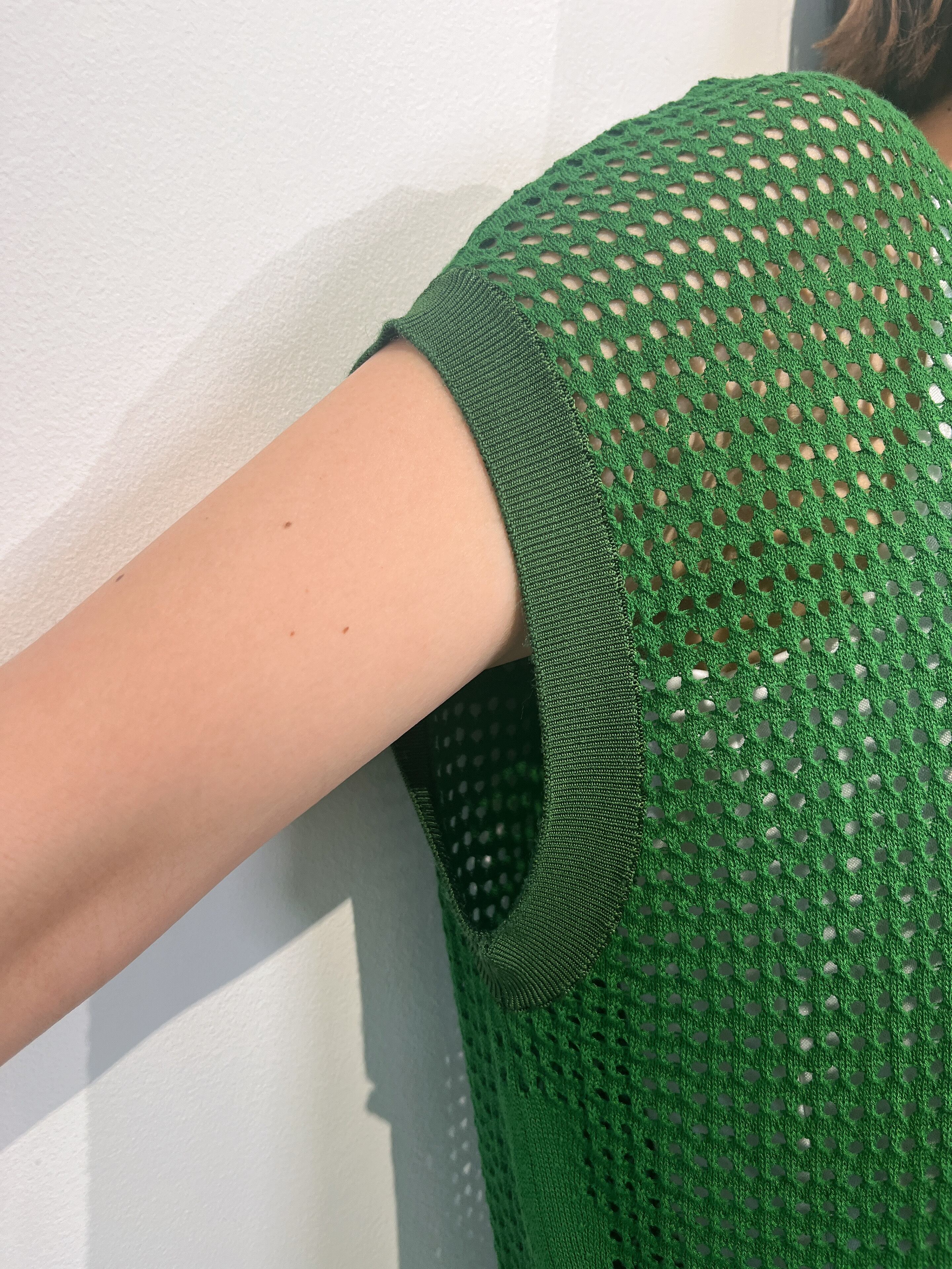 襟、袖、裾に編み立てのニットパーツを組み合わせ、上品な雰囲気に仕上げました。
