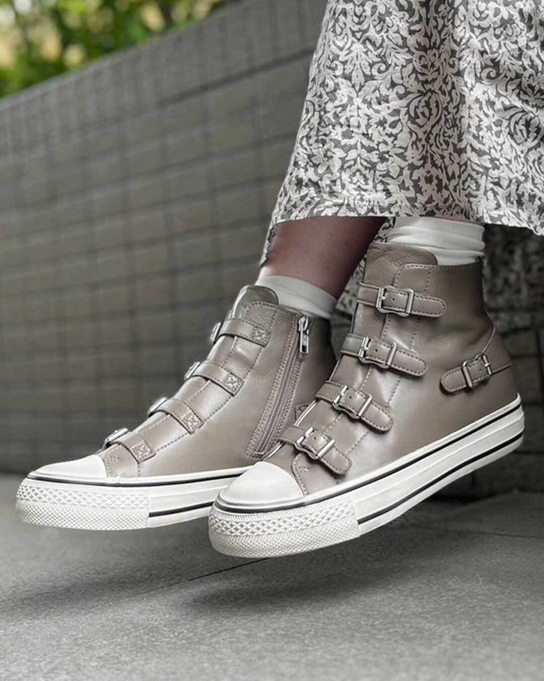 ASHのスニーカーの代表シリーズ、4本ベルトデザインのジップ付きハイカットスニーカー。