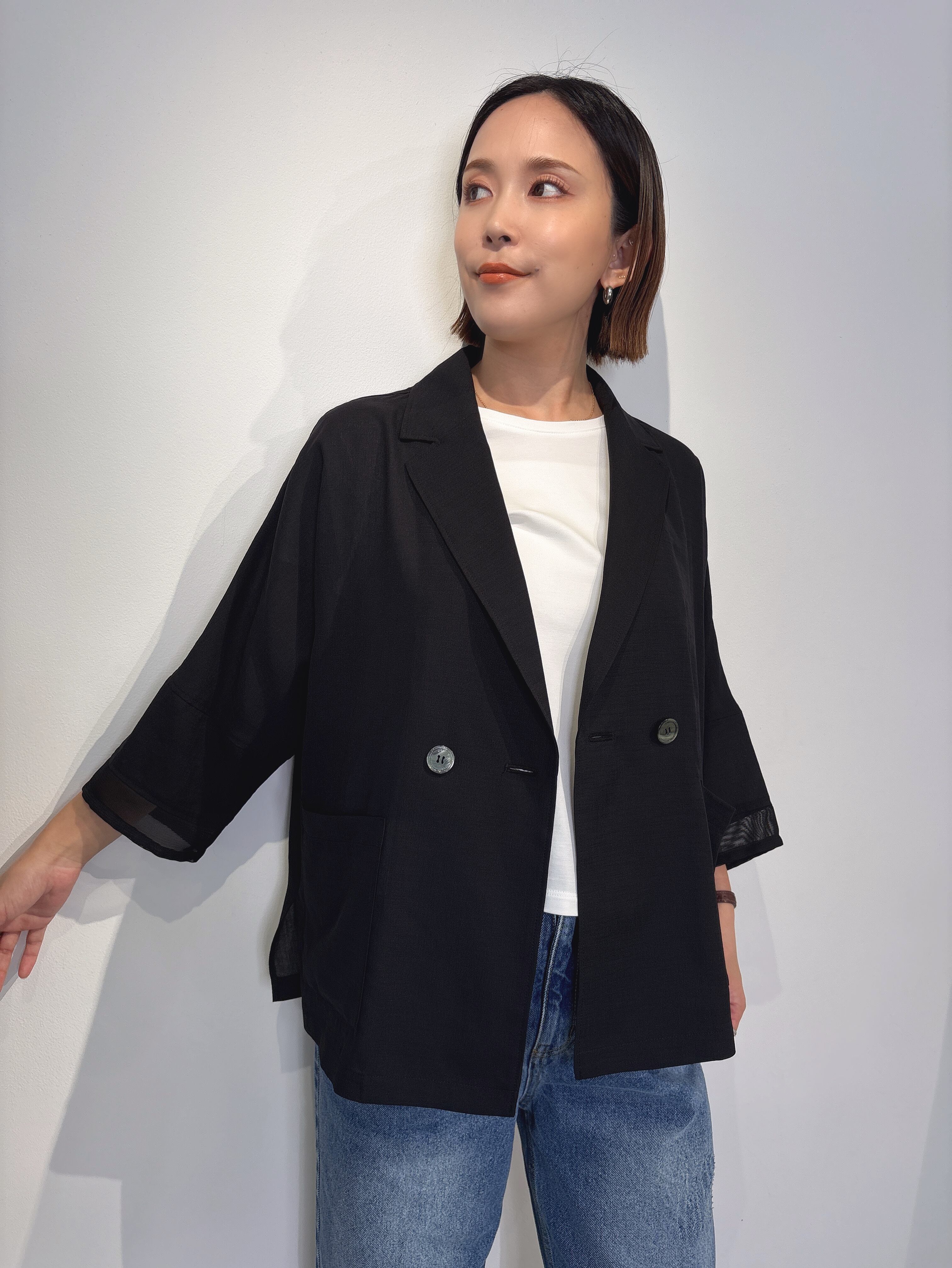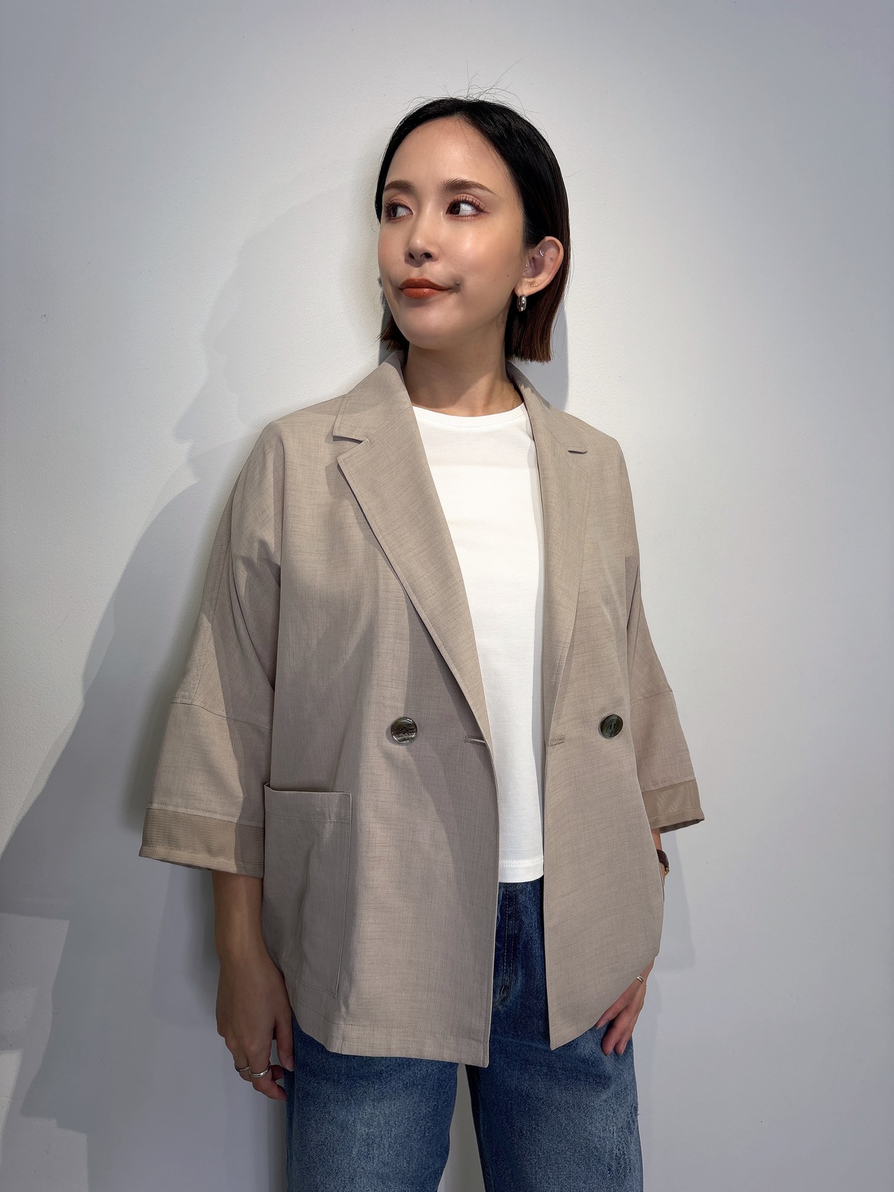 上質なリネンライク素材を使用した、軽やかな着心地のドルマンシルエットジャケットです。