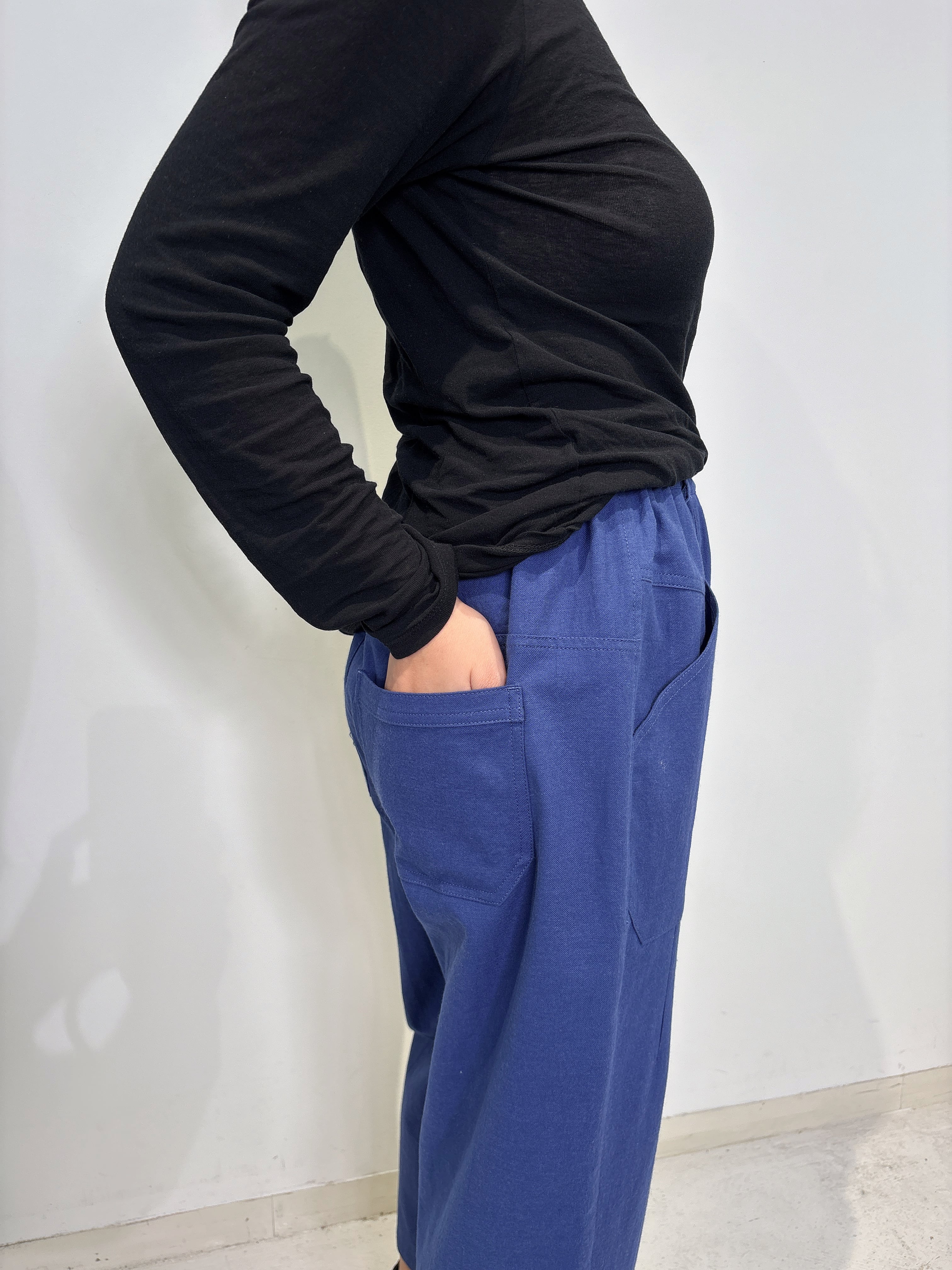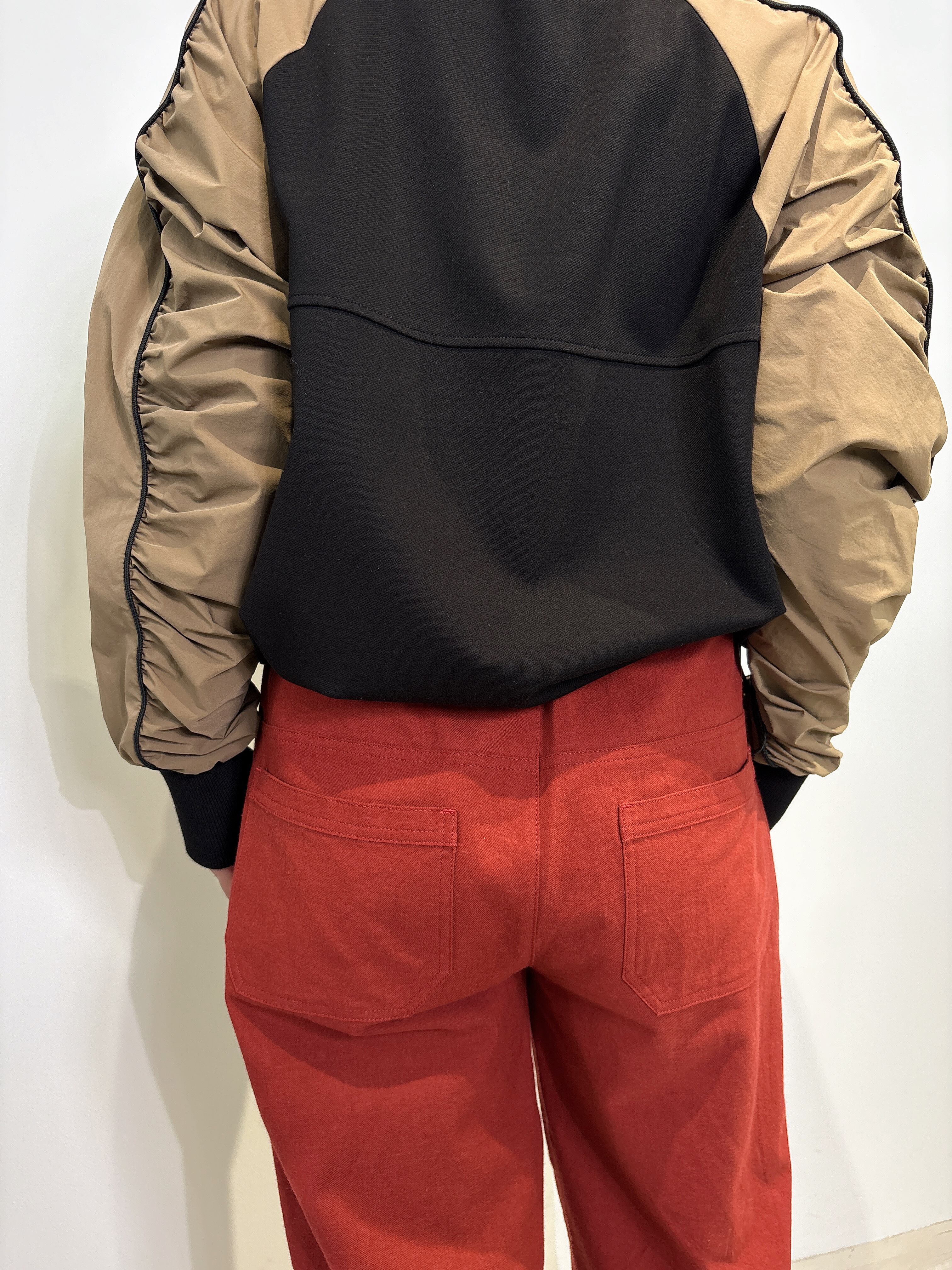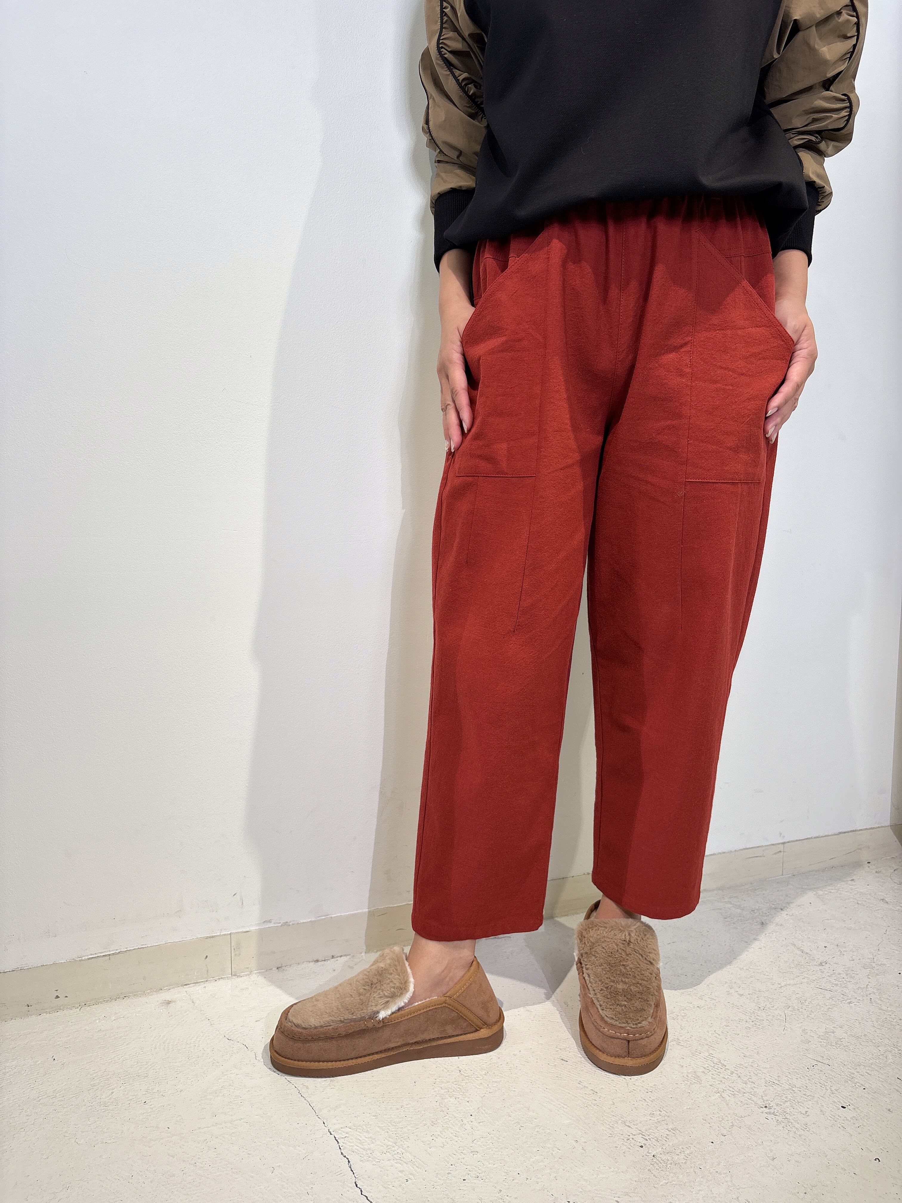 ウエストは総ゴムで、リラックスしたシルエットとこだわりの素材感が魅力のアイテムです。