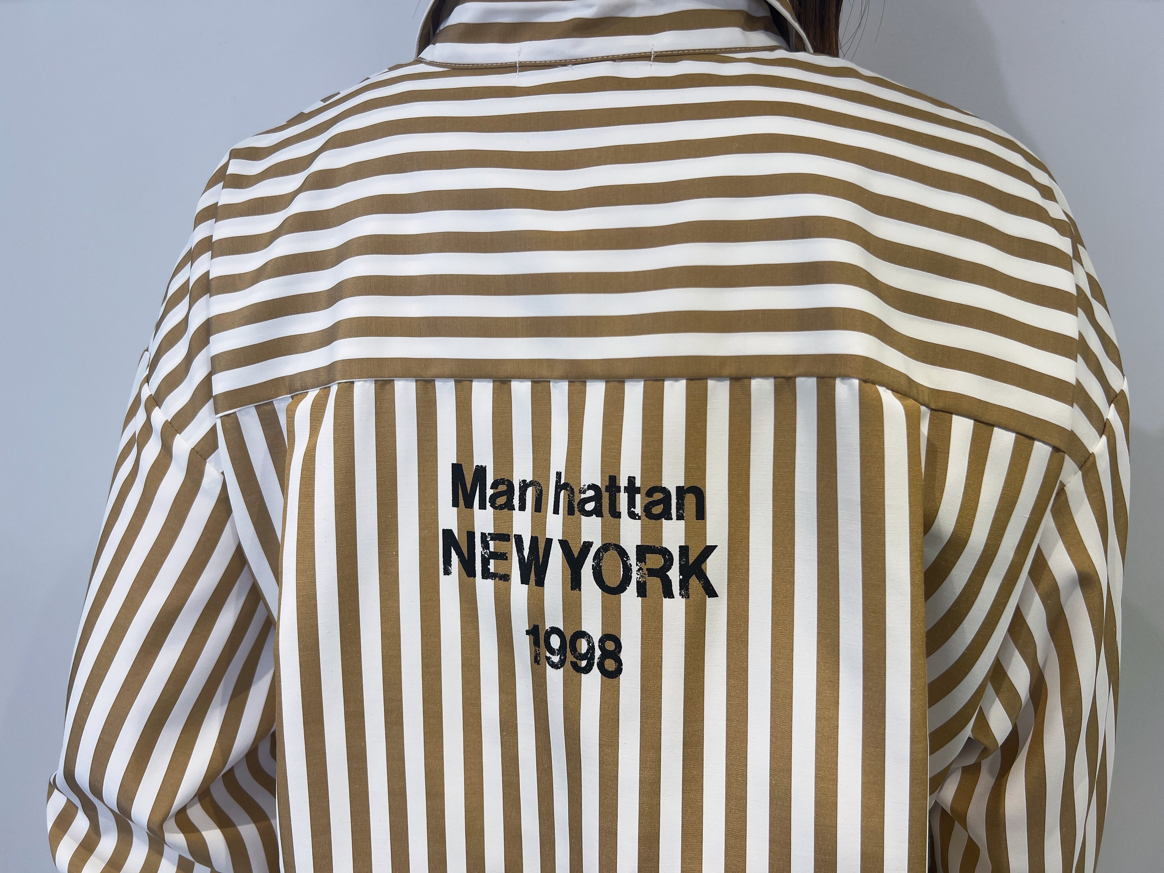 ストライププリントが目を引く《CHIGNON》2WAYストライププリントシャツ。