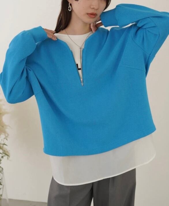 中肉で着心地の良い、柔らかなフライスニットを使用した3シーズン着回せるハーフジップトップス。