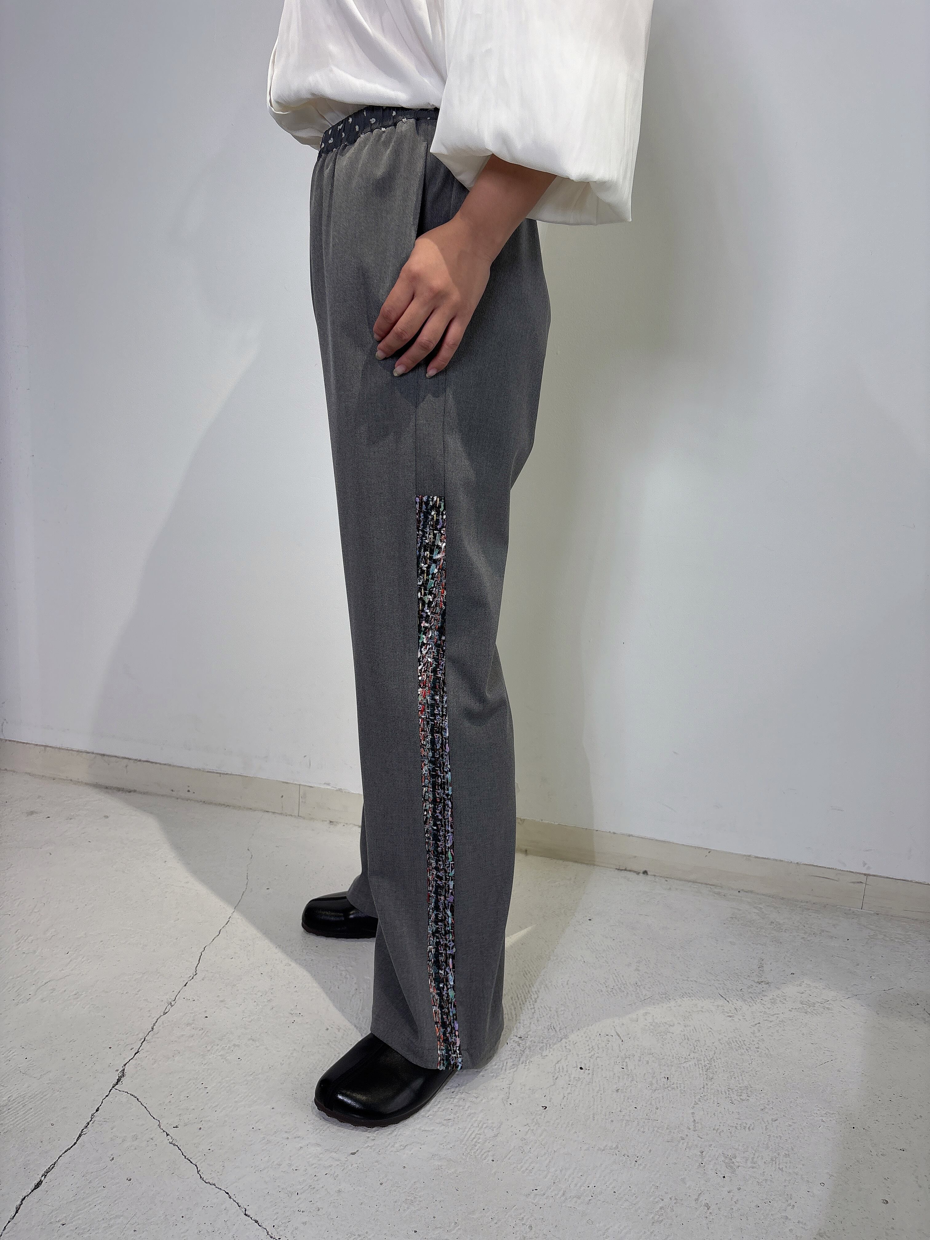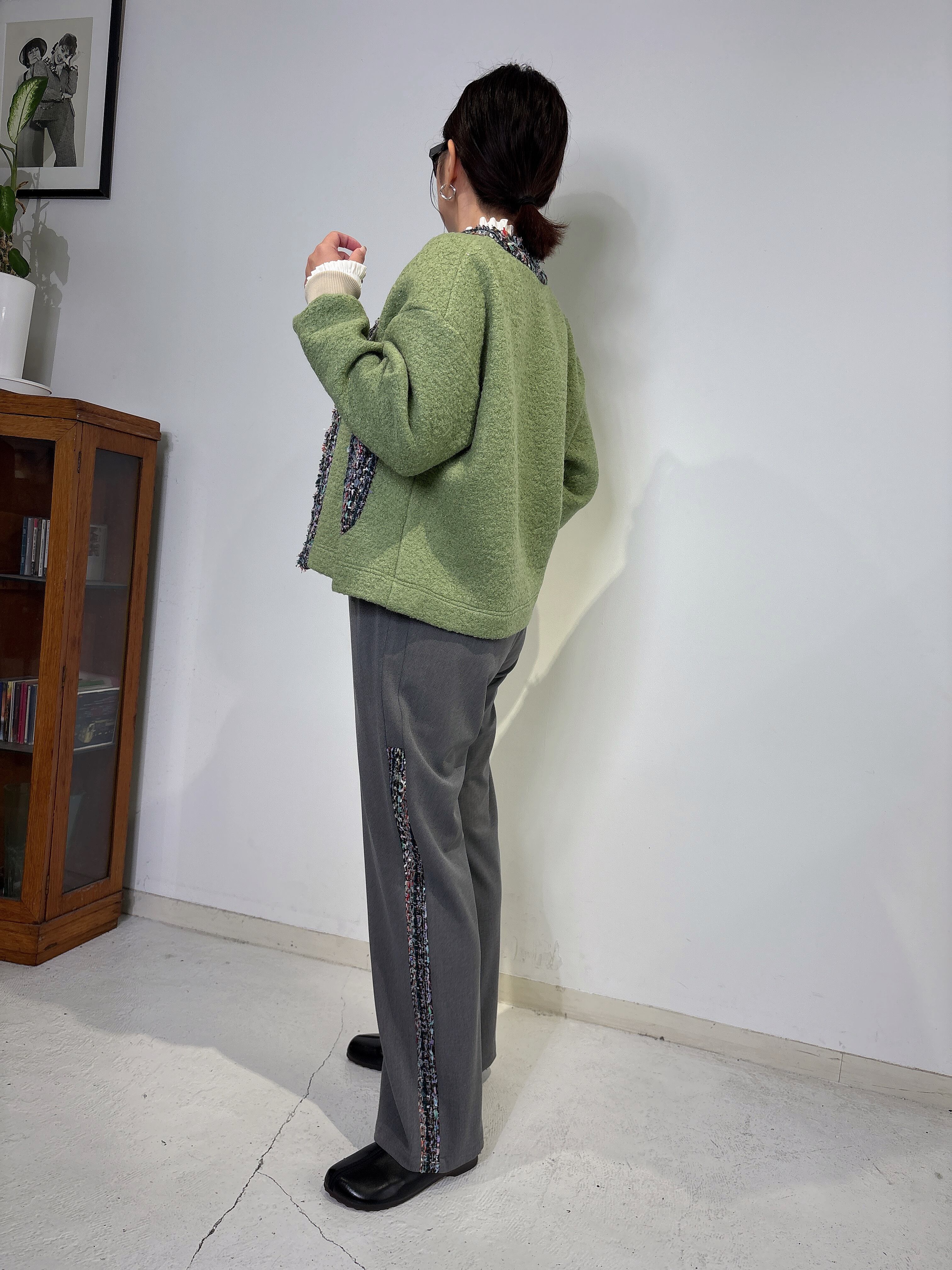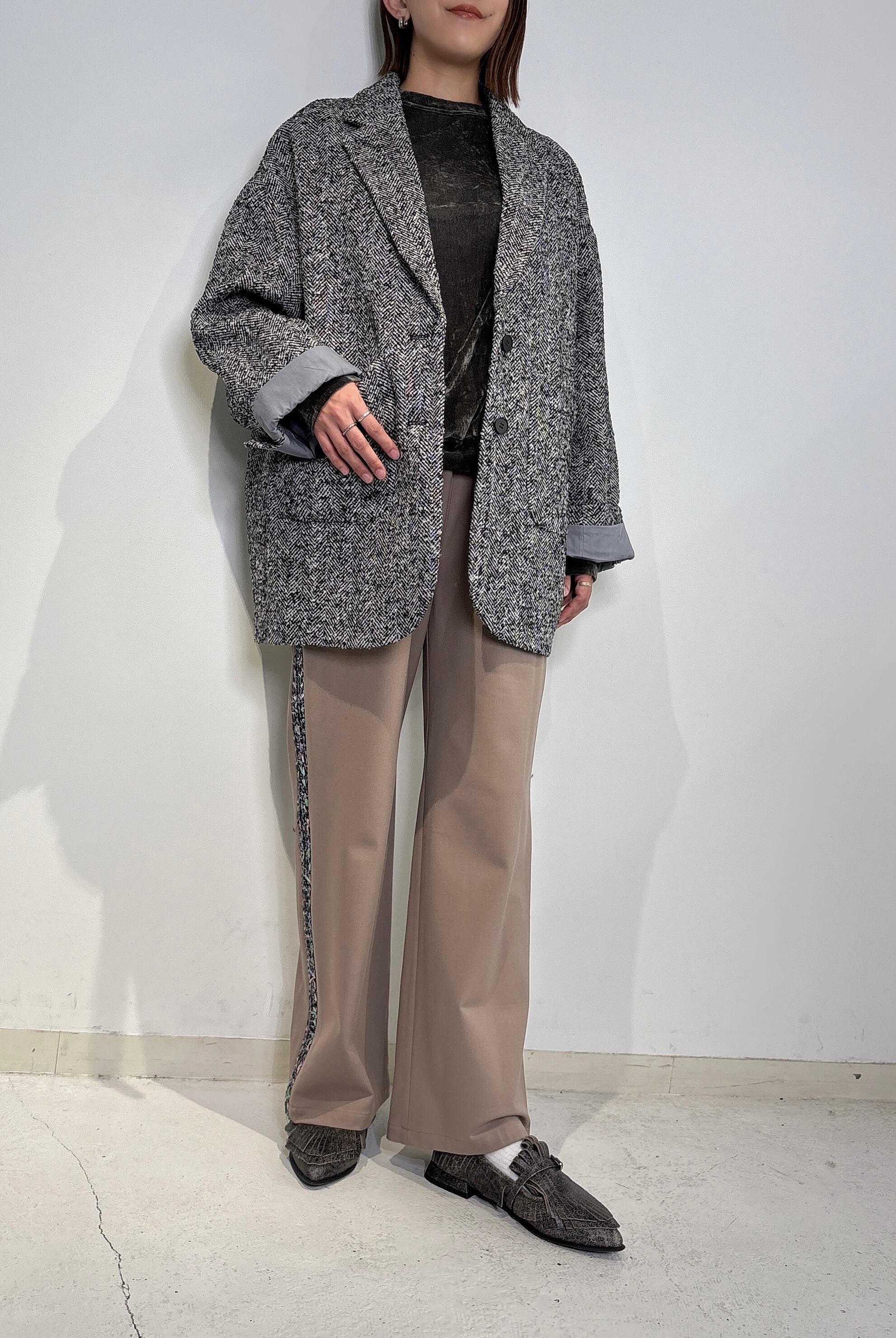 上質なツイード素材を使用し、シンプルながら洗練された印象を与えるパンツです。