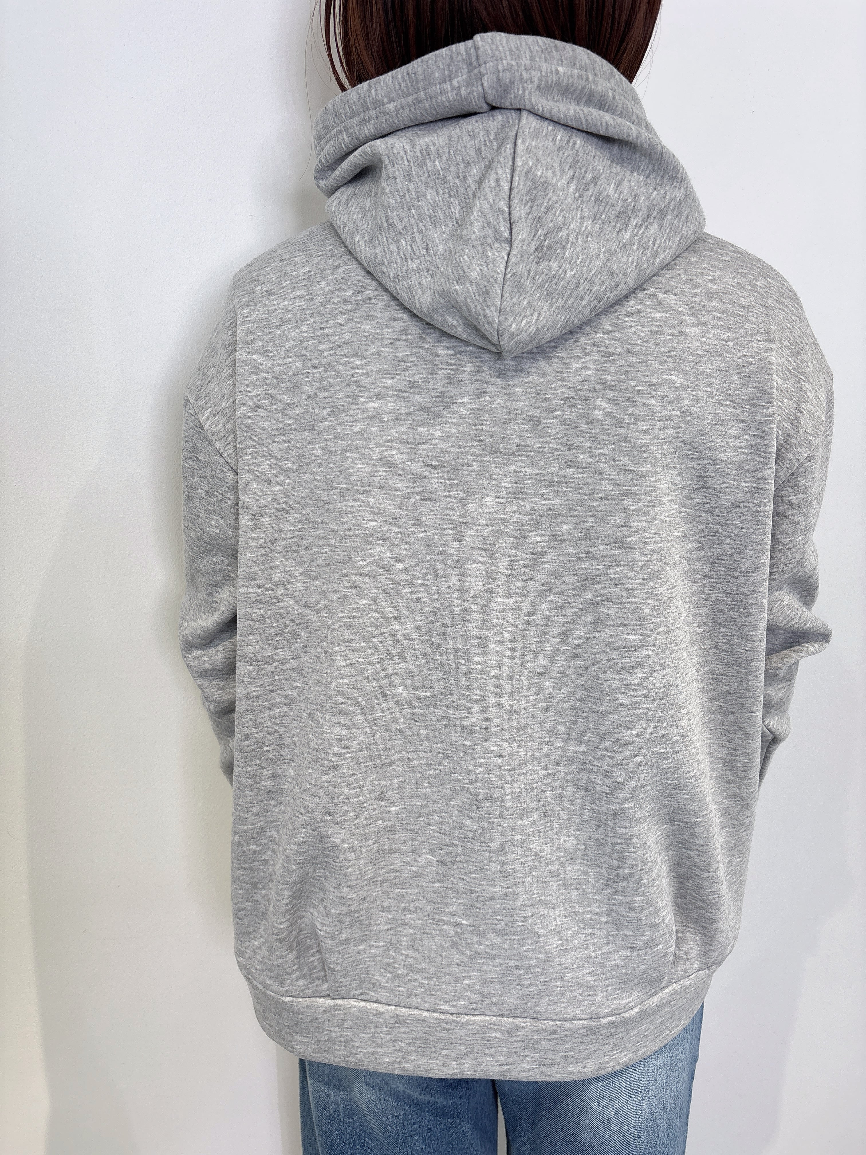 裏起毛フードパーカーは、暖かく、高めの首元でデザイン性も高い一着となっています。裏起毛素材を使用することで、肌に優しくしっかりとした保温性を実現しました。
