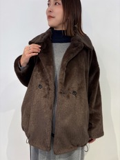 柔らかい肌触りで上質なエコファーを使用した、大きめの襟が印象的なジャケット。