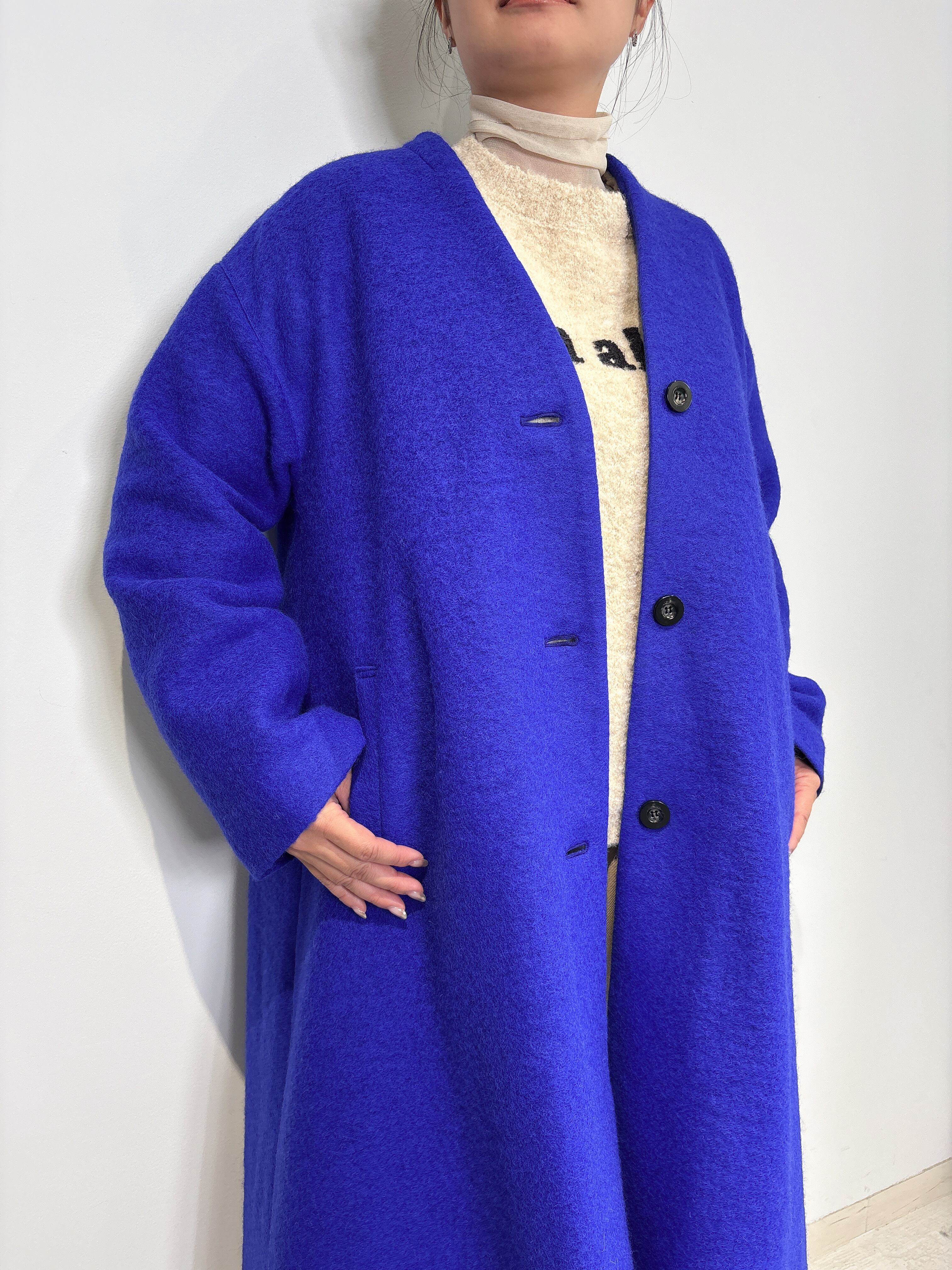 ノーカラーのデザインは首元をスッキリ見せ、インナーとの重ね着が楽しめるアイテムです。シンプルでありながら、巧妙なラインがスタイリングの幅を広げます。
