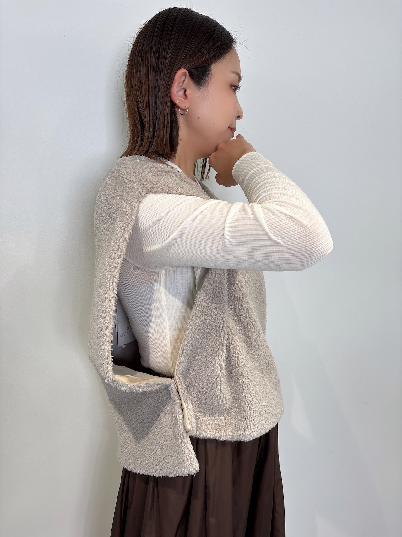 短めなの毛足のボア素材を使用したプルオーバータイプのVネックベストです。