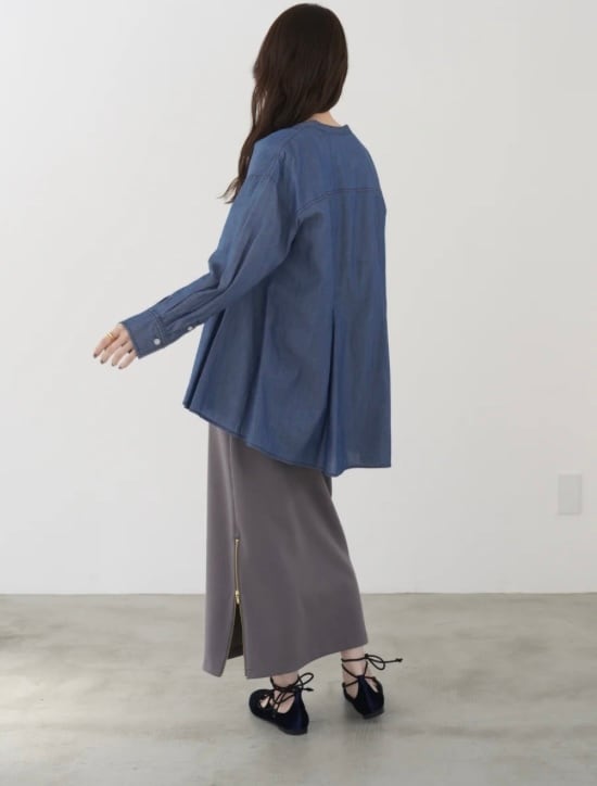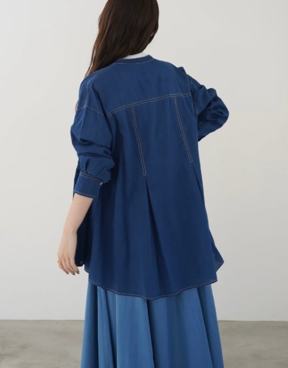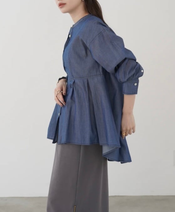 柔らかく軽い2オンスのデニムを私用した、デニムならではの加工感が特徴のブラウス。
