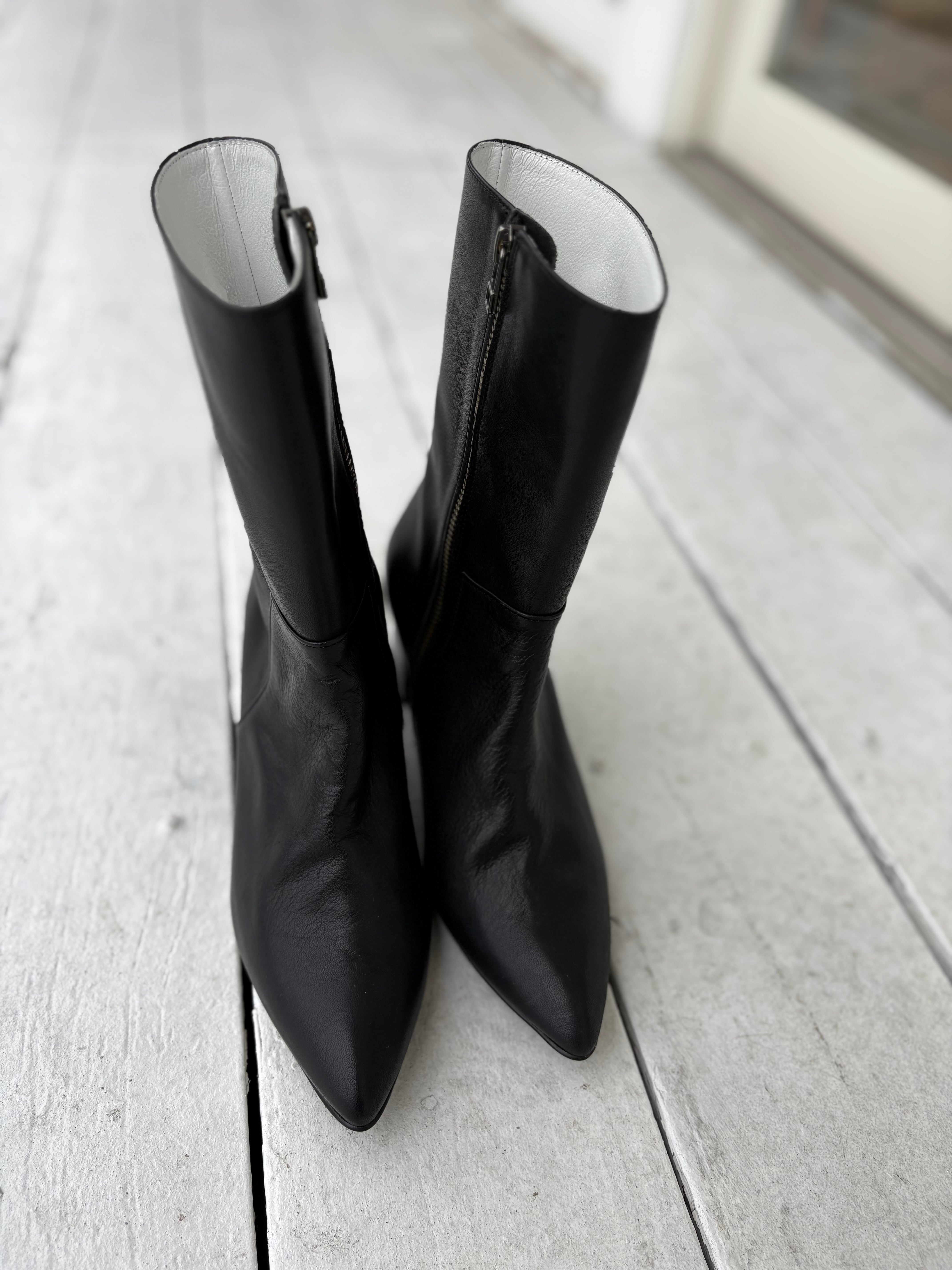 トンガリのシルエットが印象的で、綺麗めコーディネートが完成します。