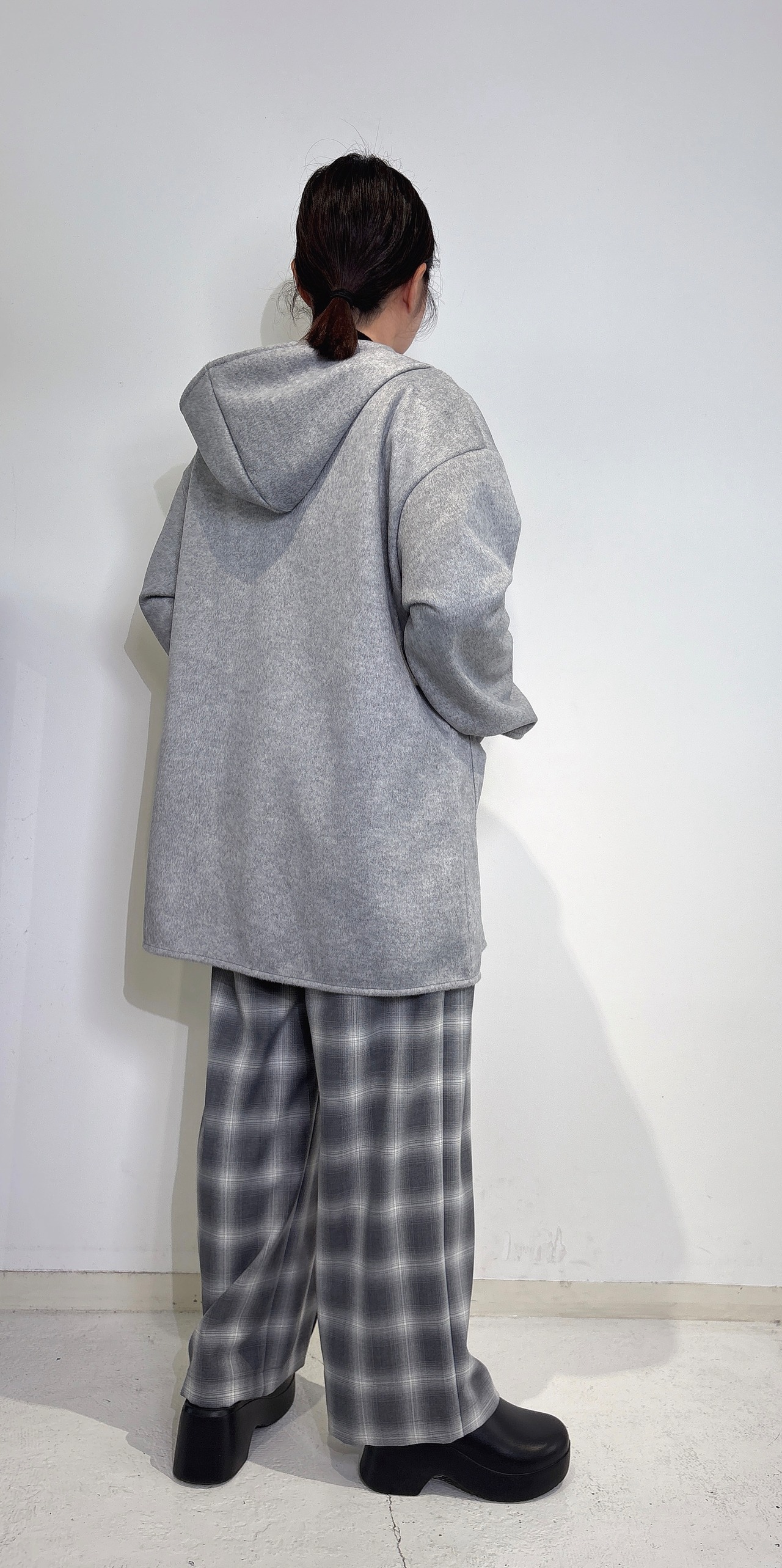 ニットの様に伸縮性があり、フード付きですが軽い着心地で気軽に羽織れるアイテムです。
