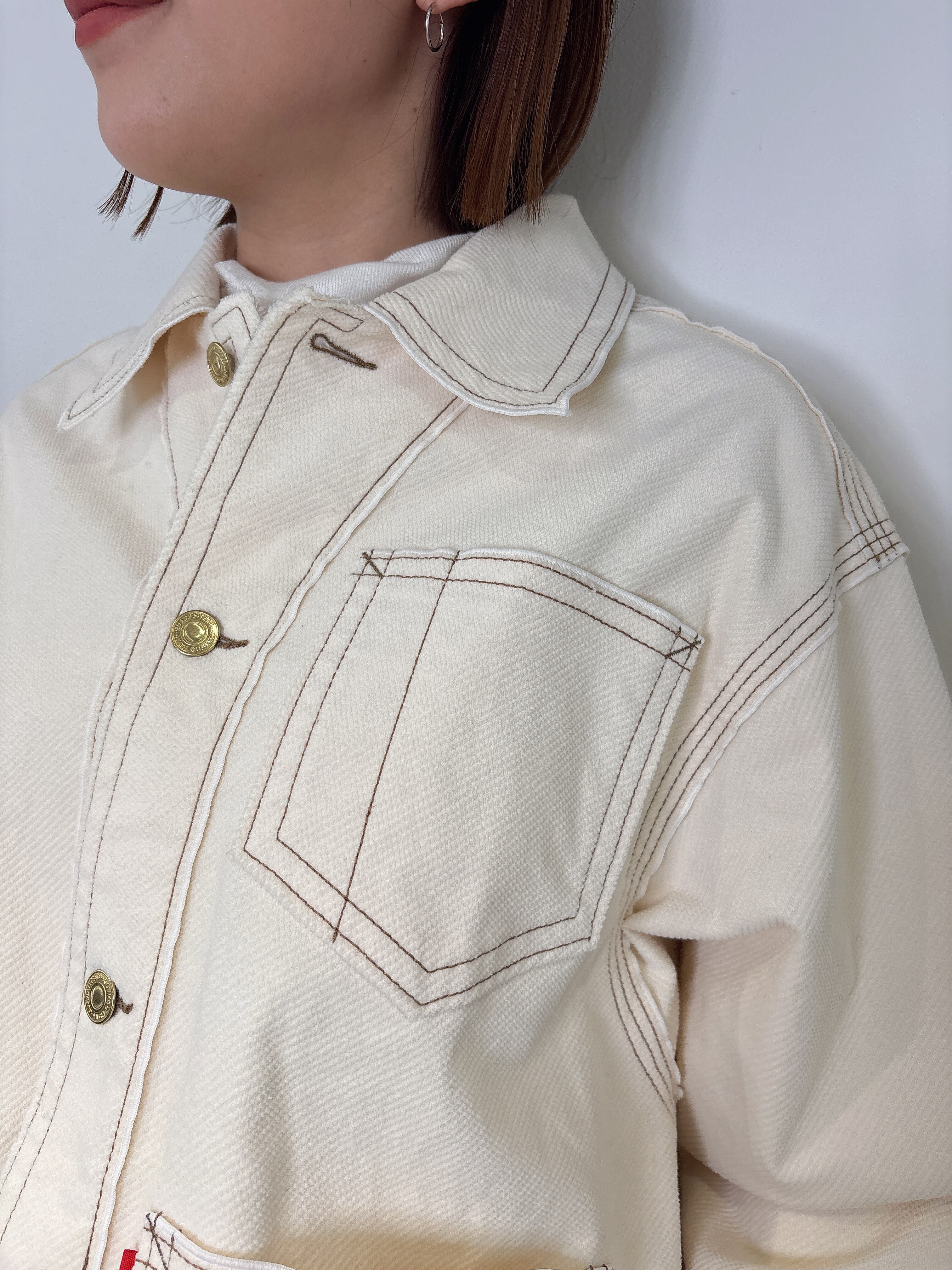 素材には程よい厚みのあるコットン地を使用し、軽い羽織り心地ながらも季節の変わり目にしっかり活躍。