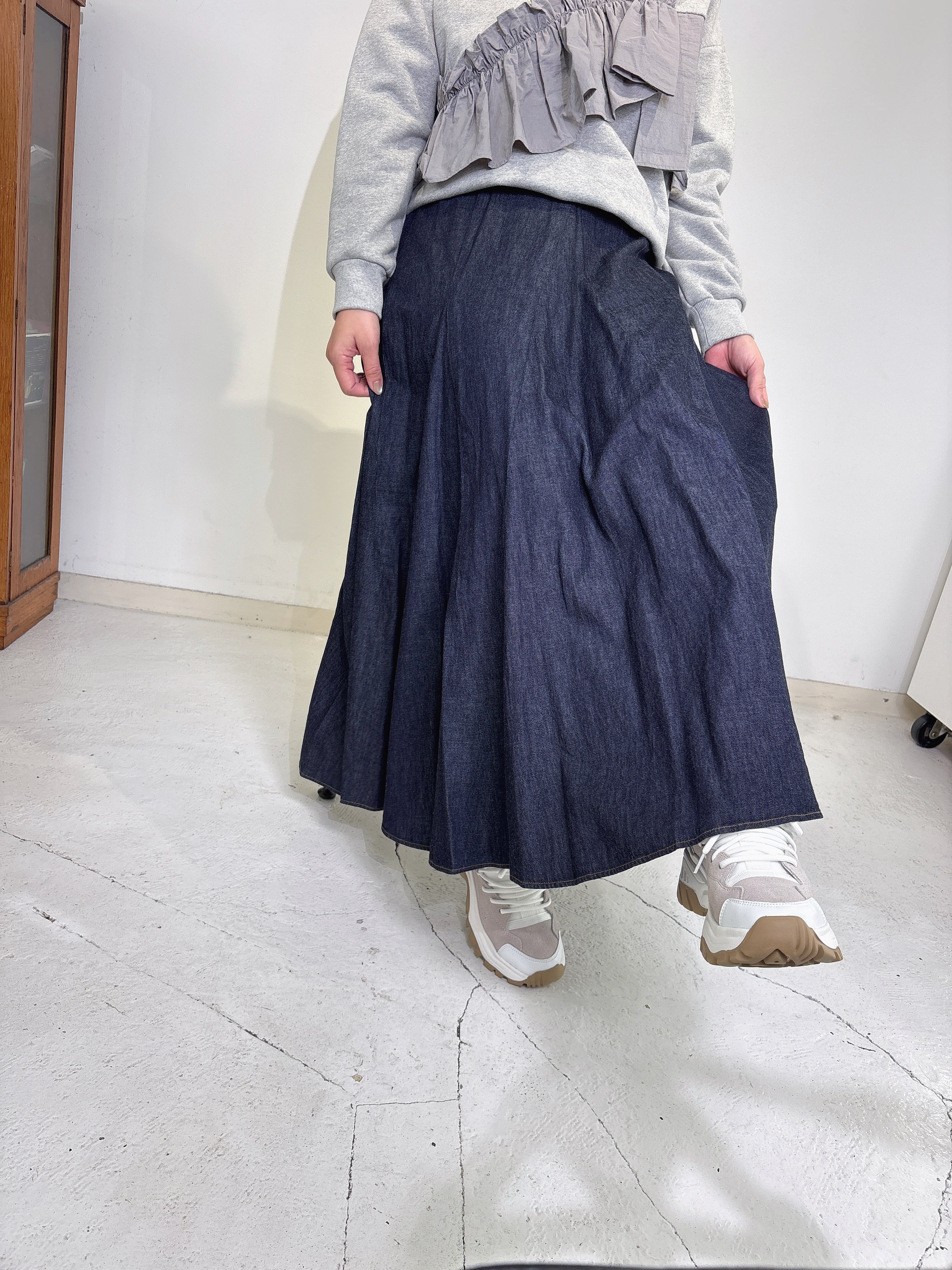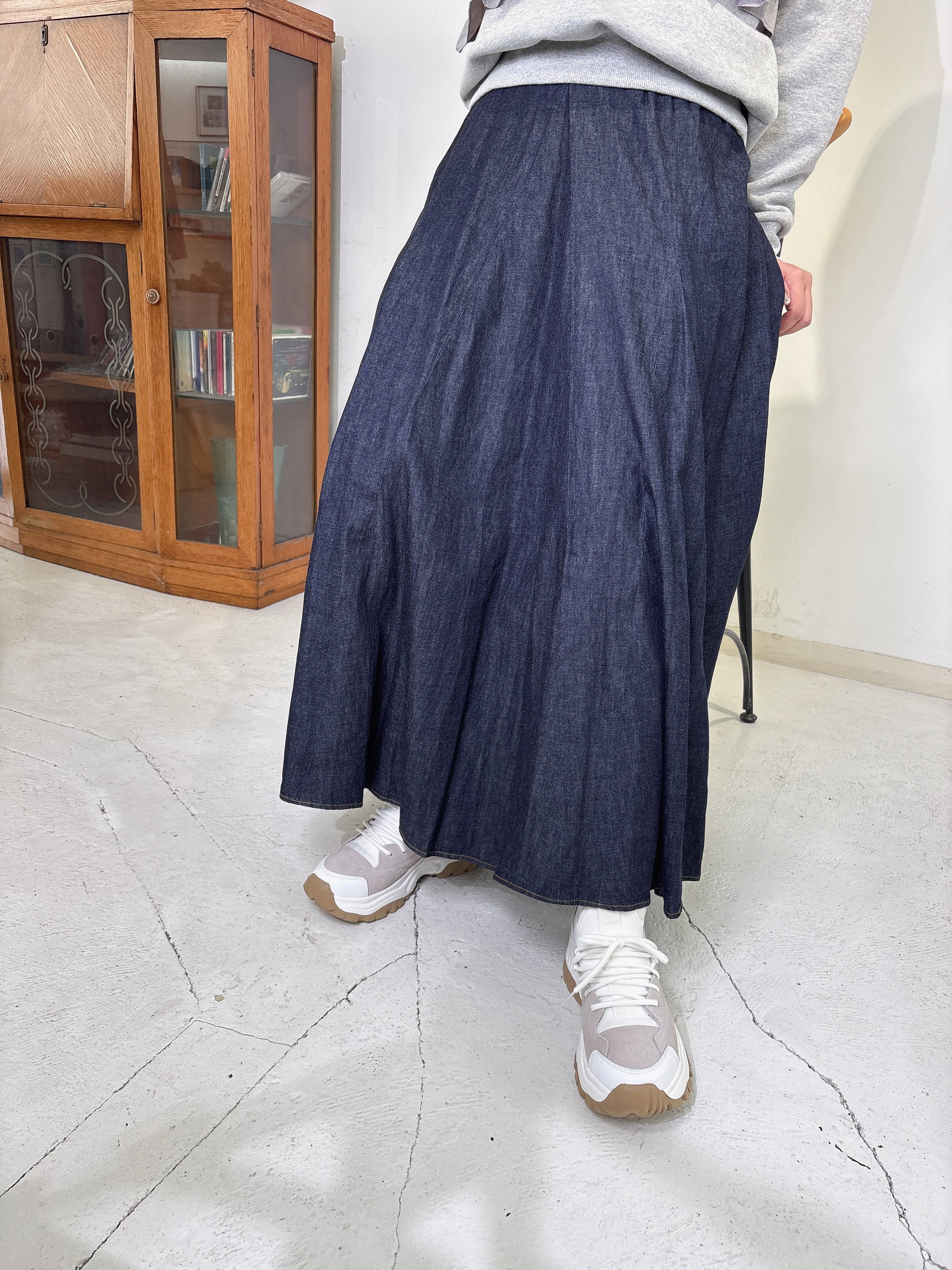《Munich》ウォッシュ5.5オンススラブデニムマキシフレアスカート