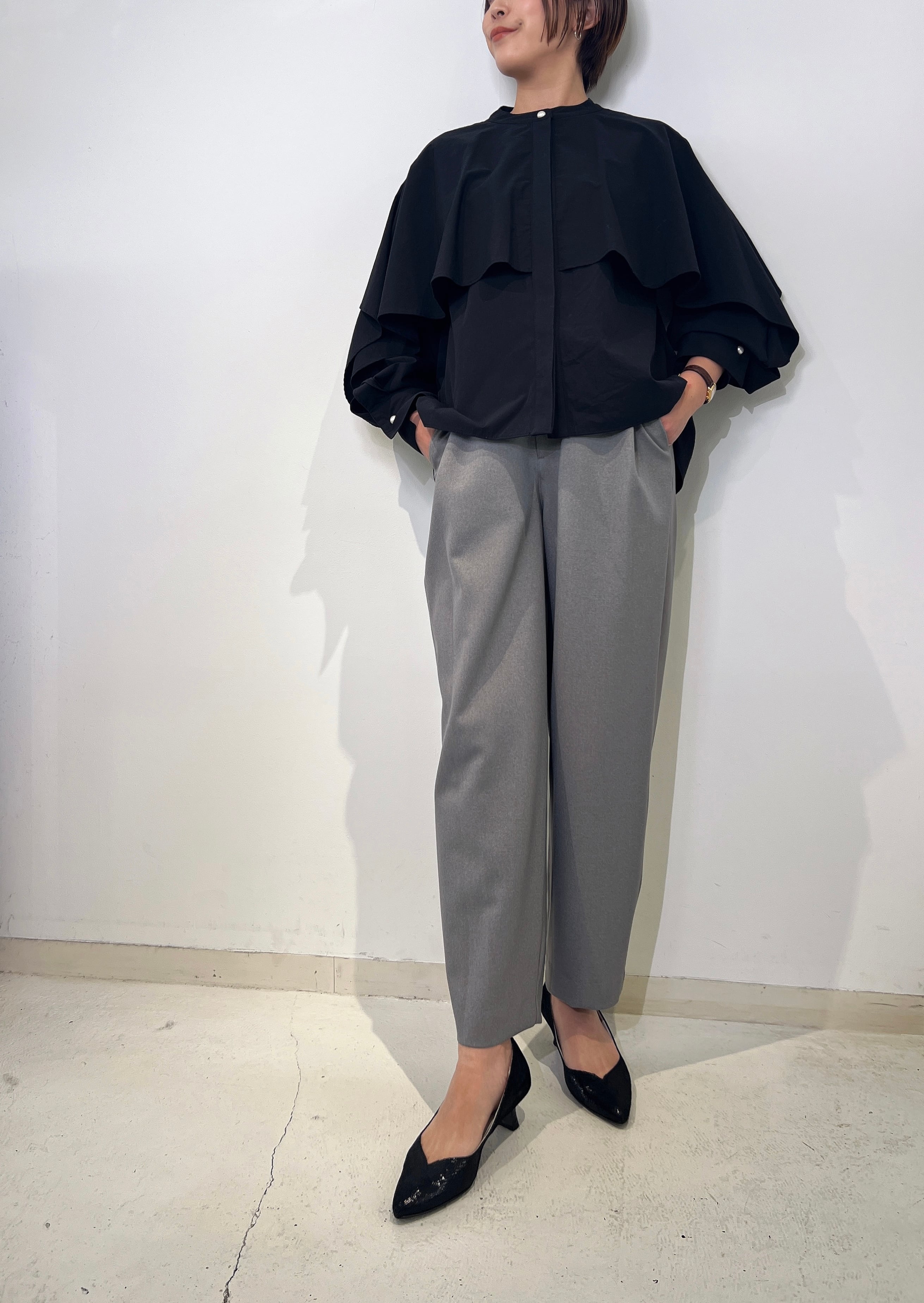 タックコクーンパンツは、優雅なシルエットと快適な着心地が魅力のアイテムです。