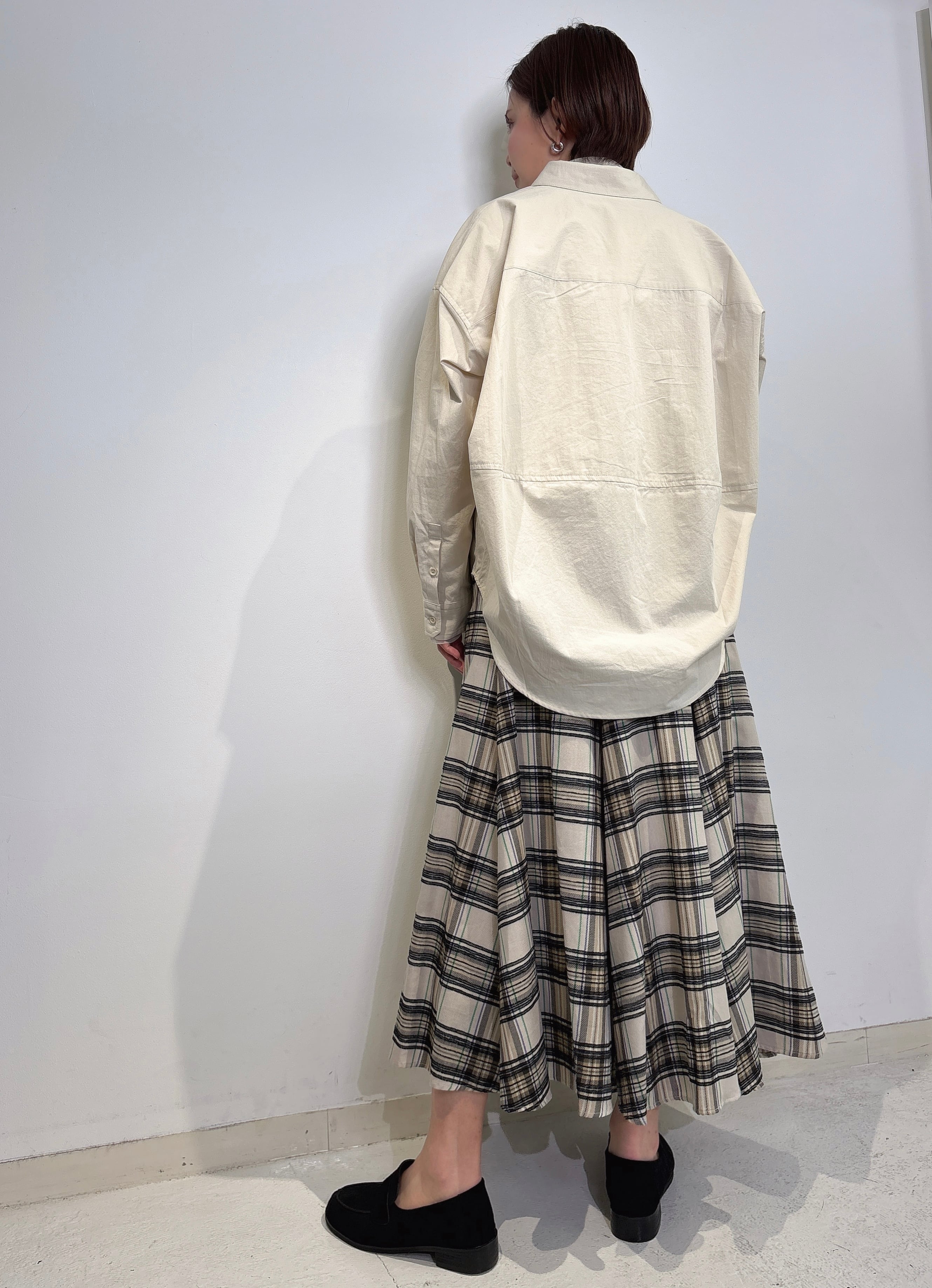 センターバック丈77cmでスペック上はやや長めですが、丸みを持たせるのにタテにもパターンを展開しているため77cmのうち6cmが展開分量になっています。