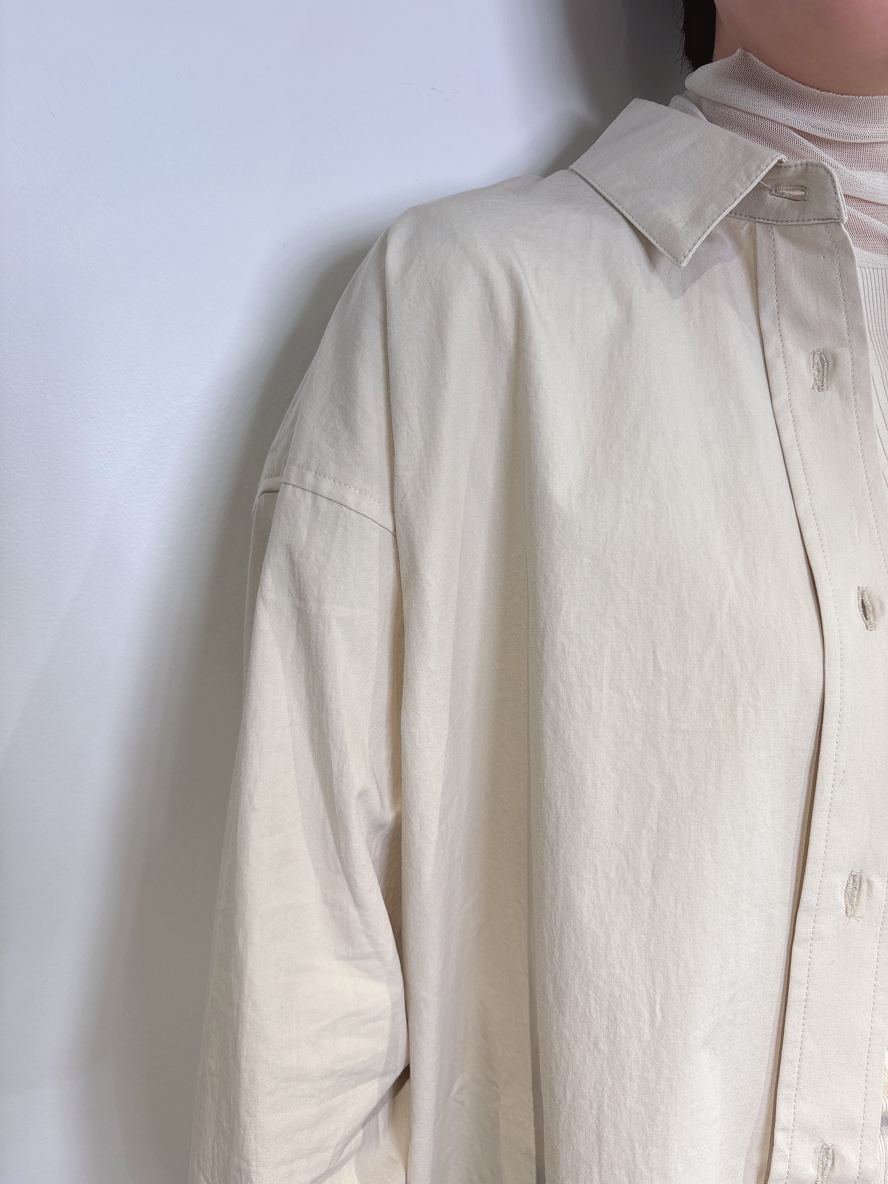 そのため実質のレングス感は71cmほどで着用時はオーソドックスなシャツレングスに落ち着きます。