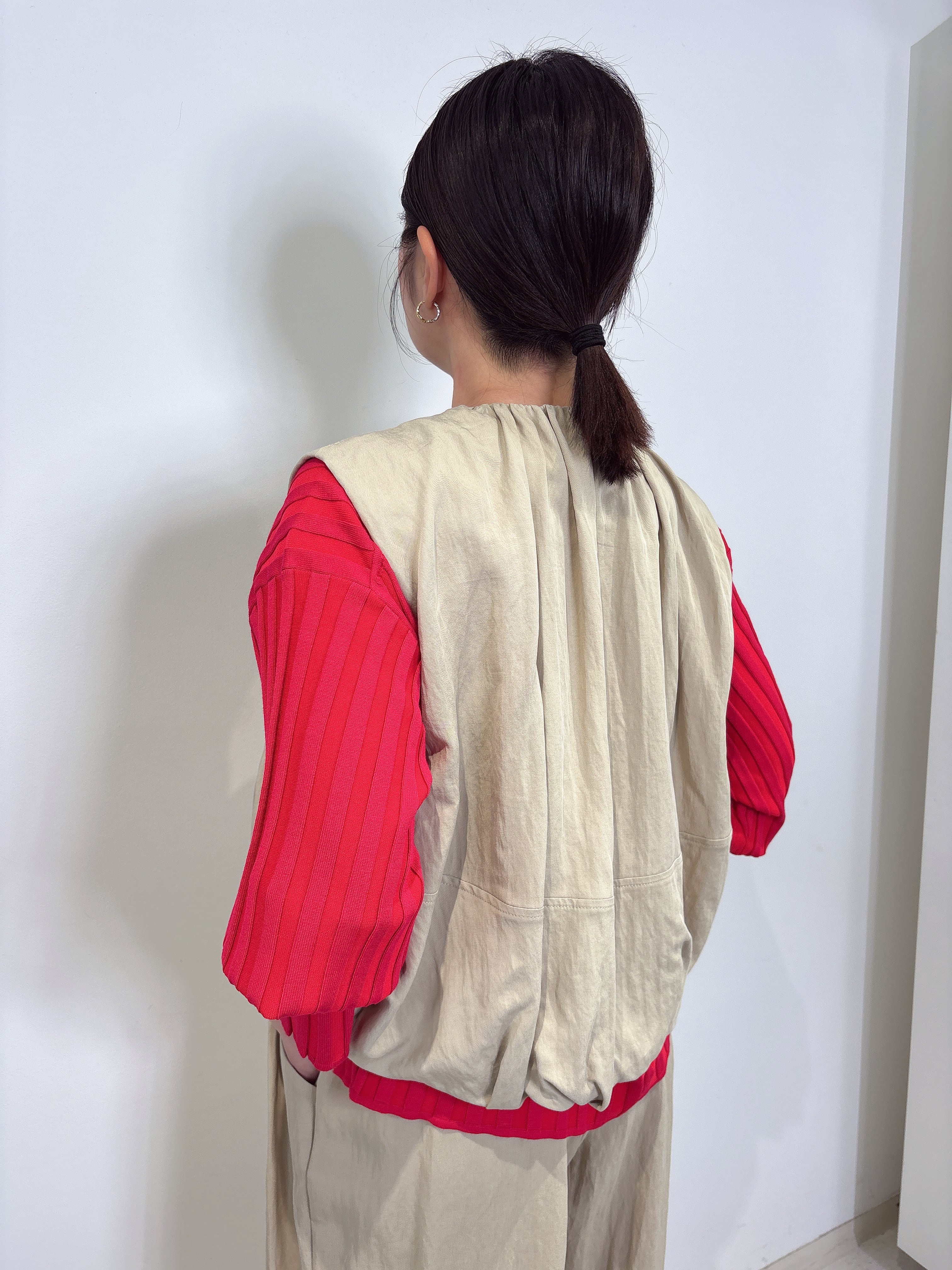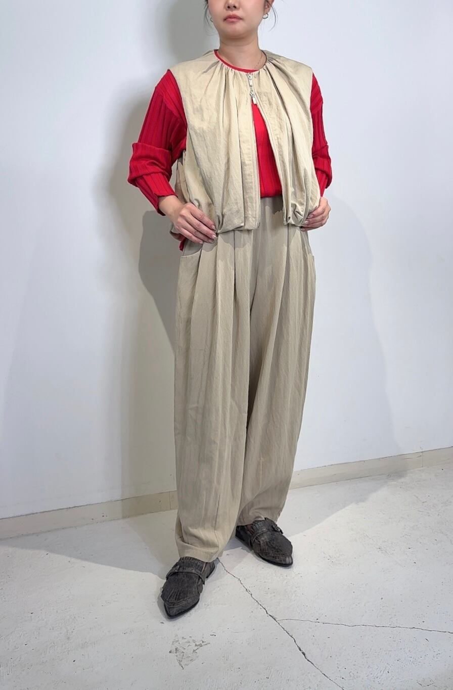 軽やかな素材感が、心地よい着用感を提供しつつ、独特のバルーンシルエットが全体のコーディネートを引き立てます。