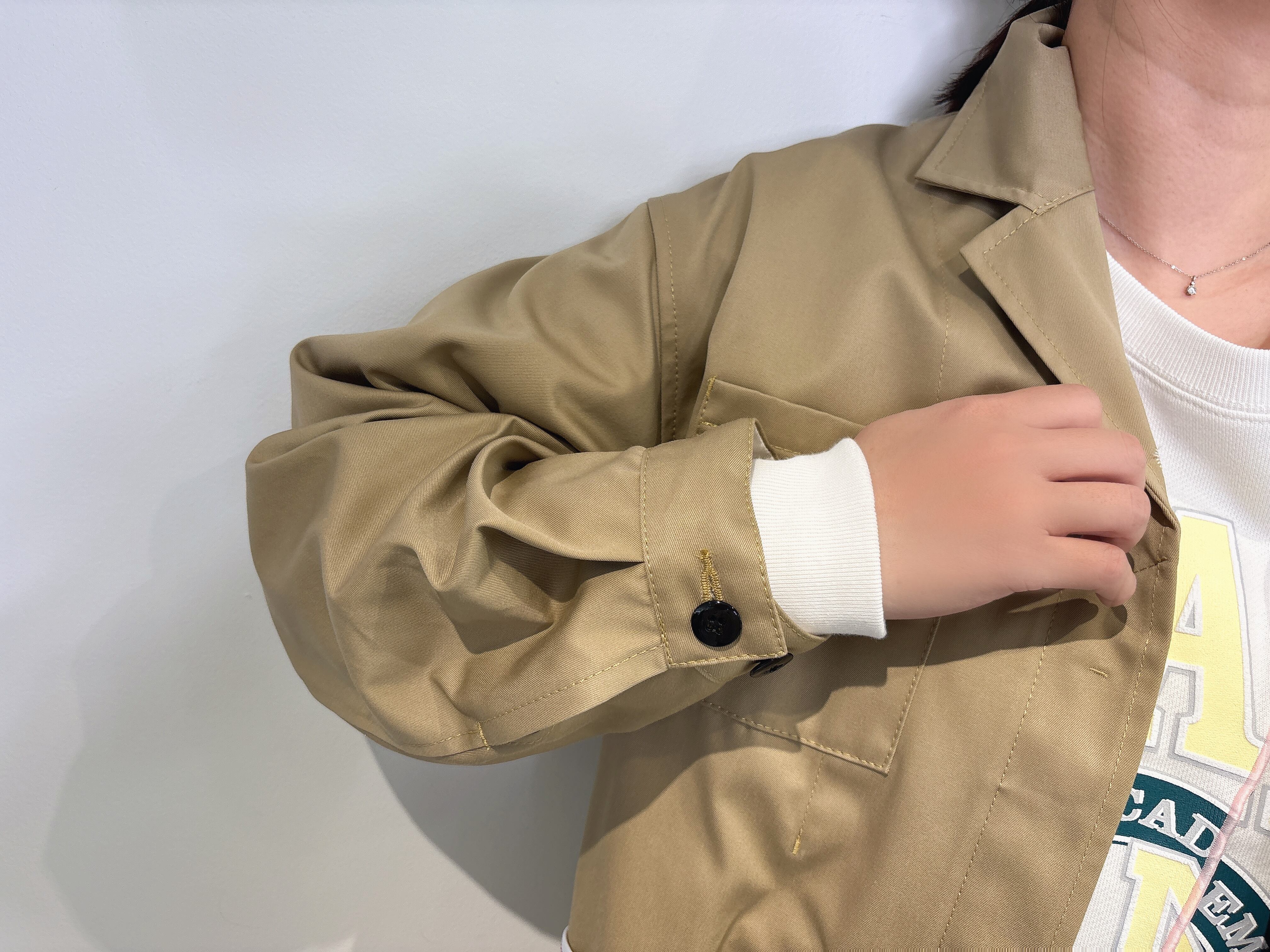 フロントにはミニマルなポケットを配し、シンプルでありながら実用性を重視したスタイル。適度な丈感とすっきりとしたラインが、どんなボトムとも相性抜群です。