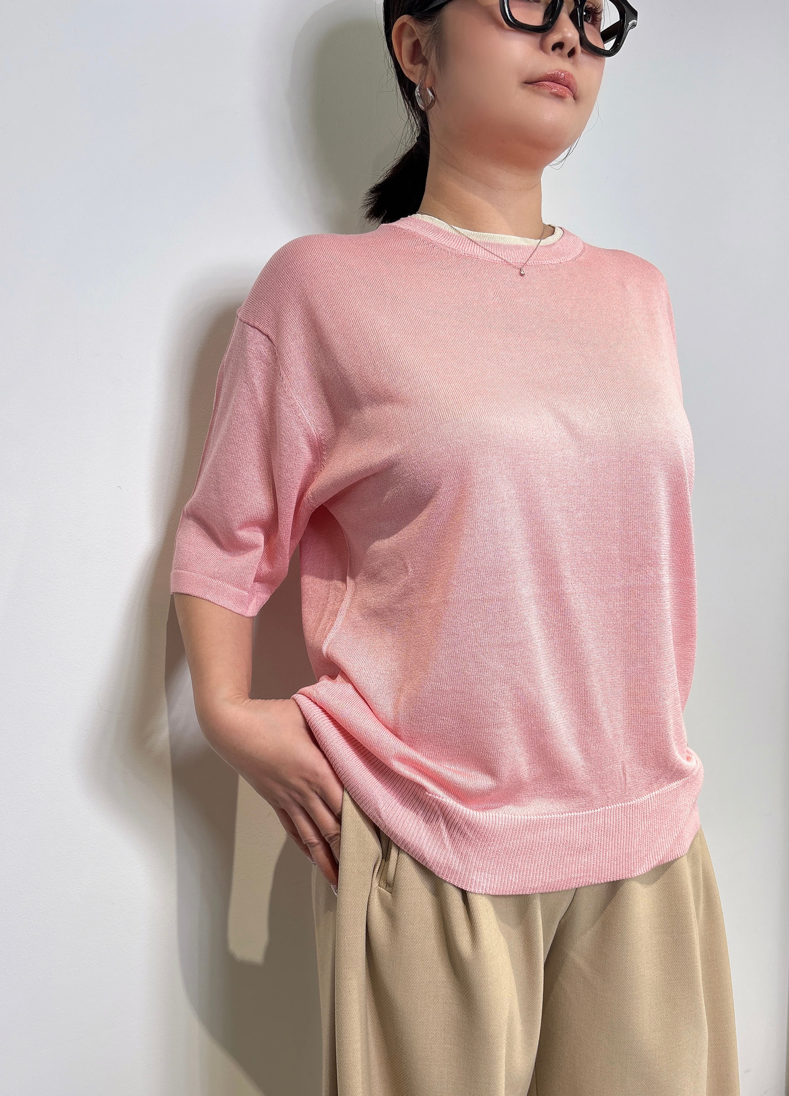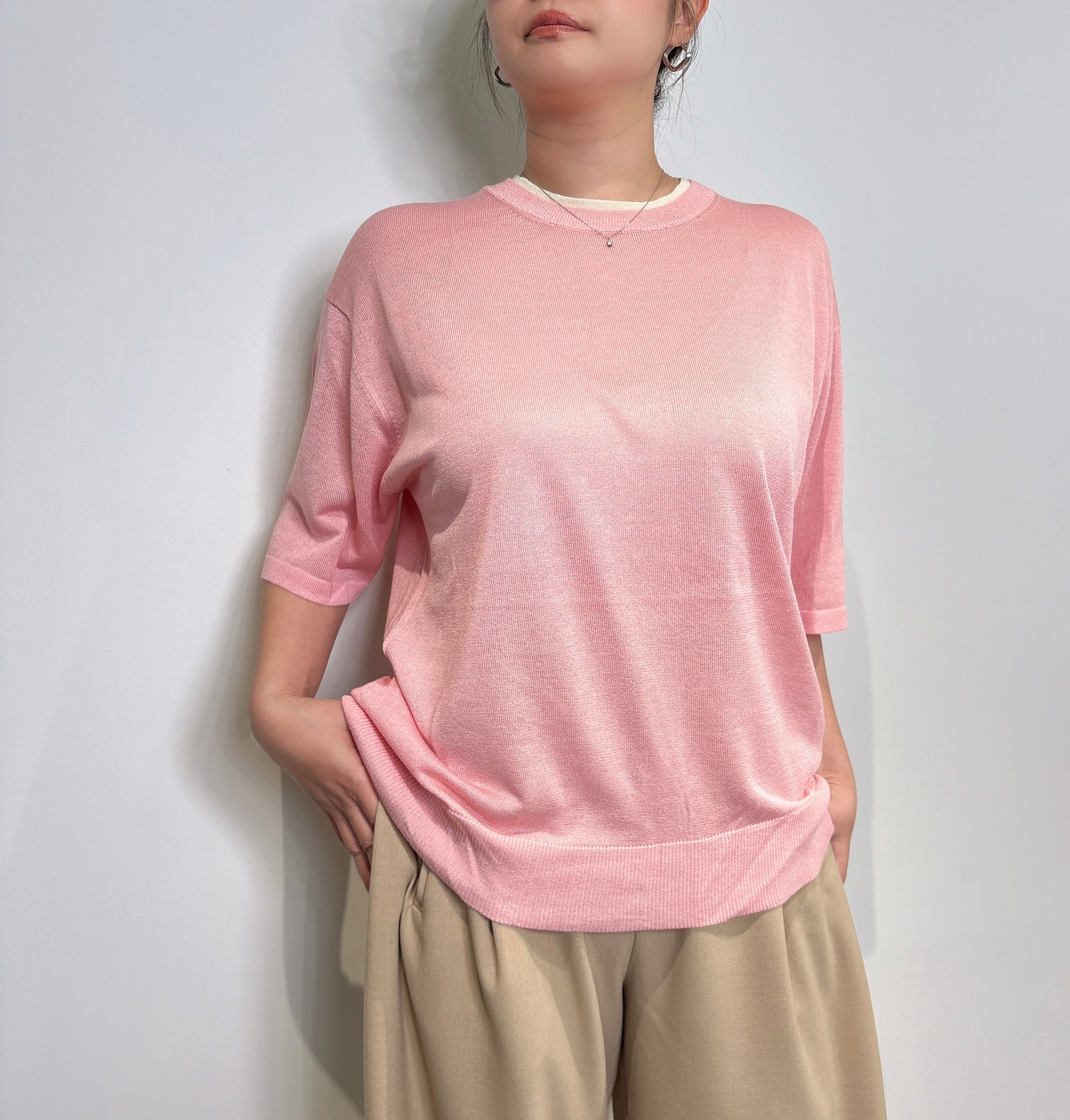 《chignon》衿配色ハーフスリーブニット