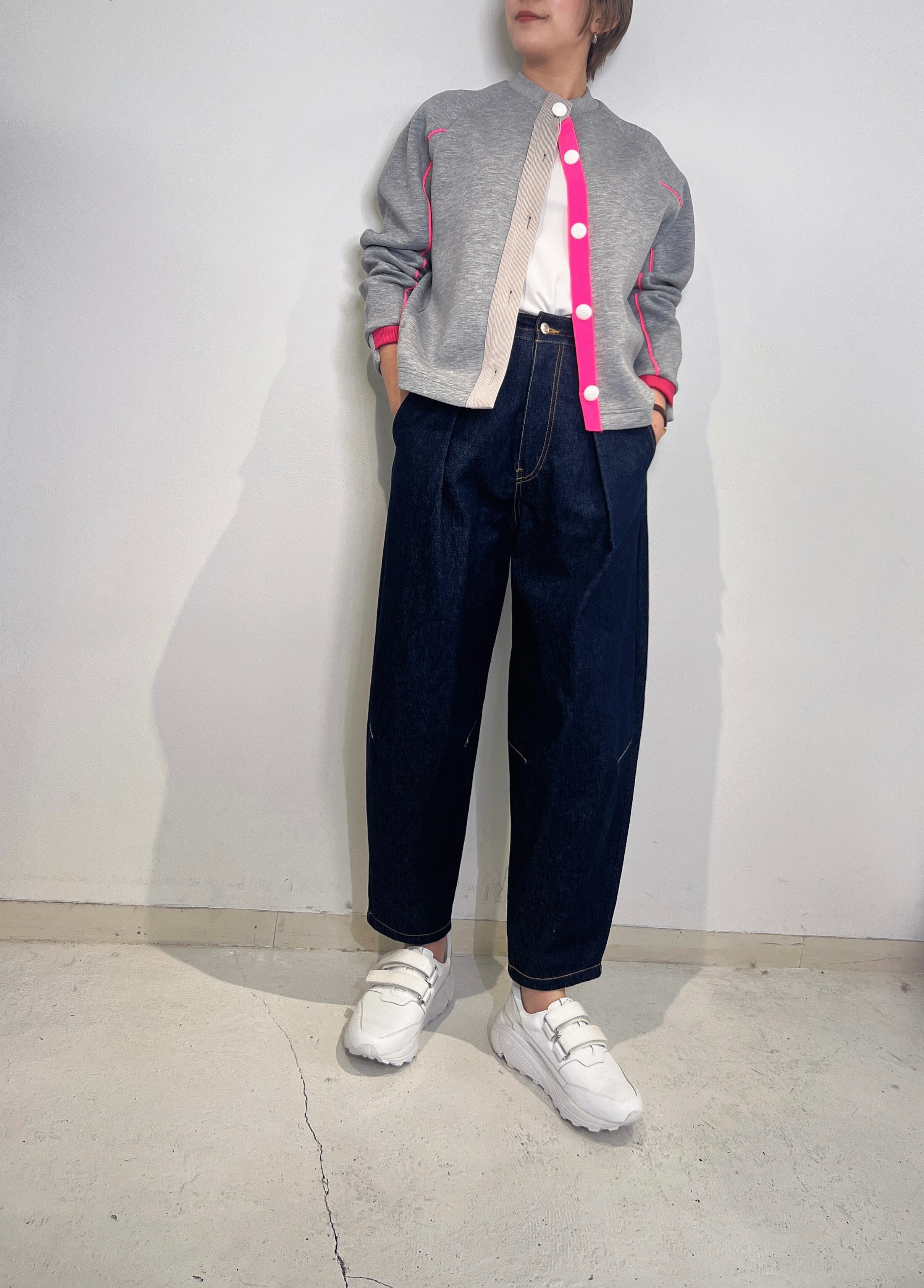 今シーズンは袖にラインを入れ、前たての素材もリブに変えていつもとは違う表情にアップデートしました。