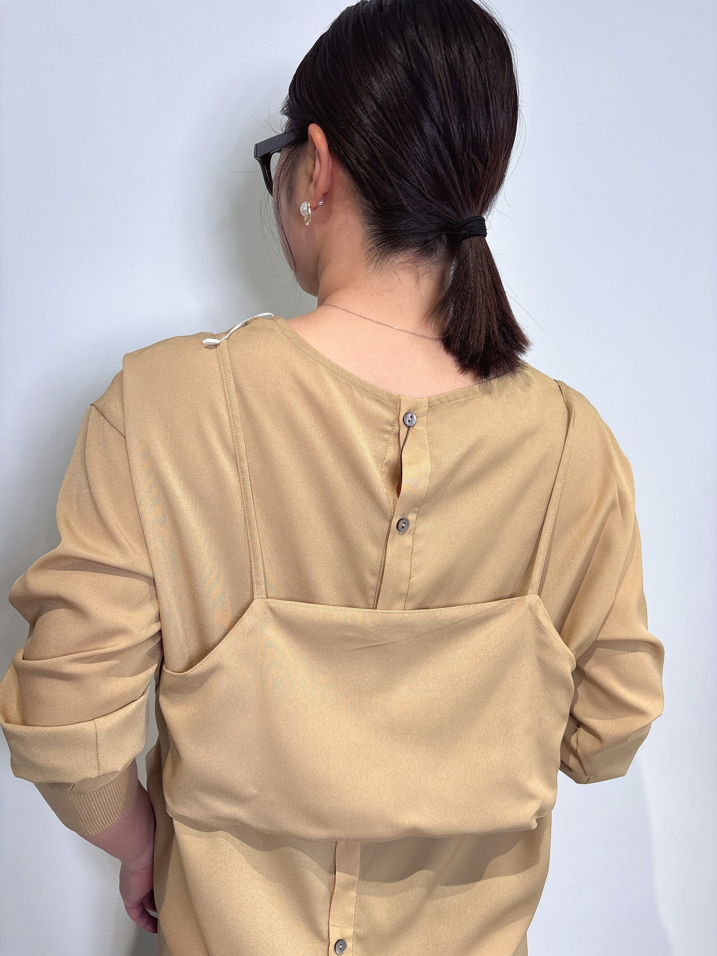 マイルドな光沢感とドレープが魅力。上品でしなやかな風合いで、シワになりにくく軽やかです。キャミソールを重ねても、インに着ても様々な着こなしを楽しめます。
