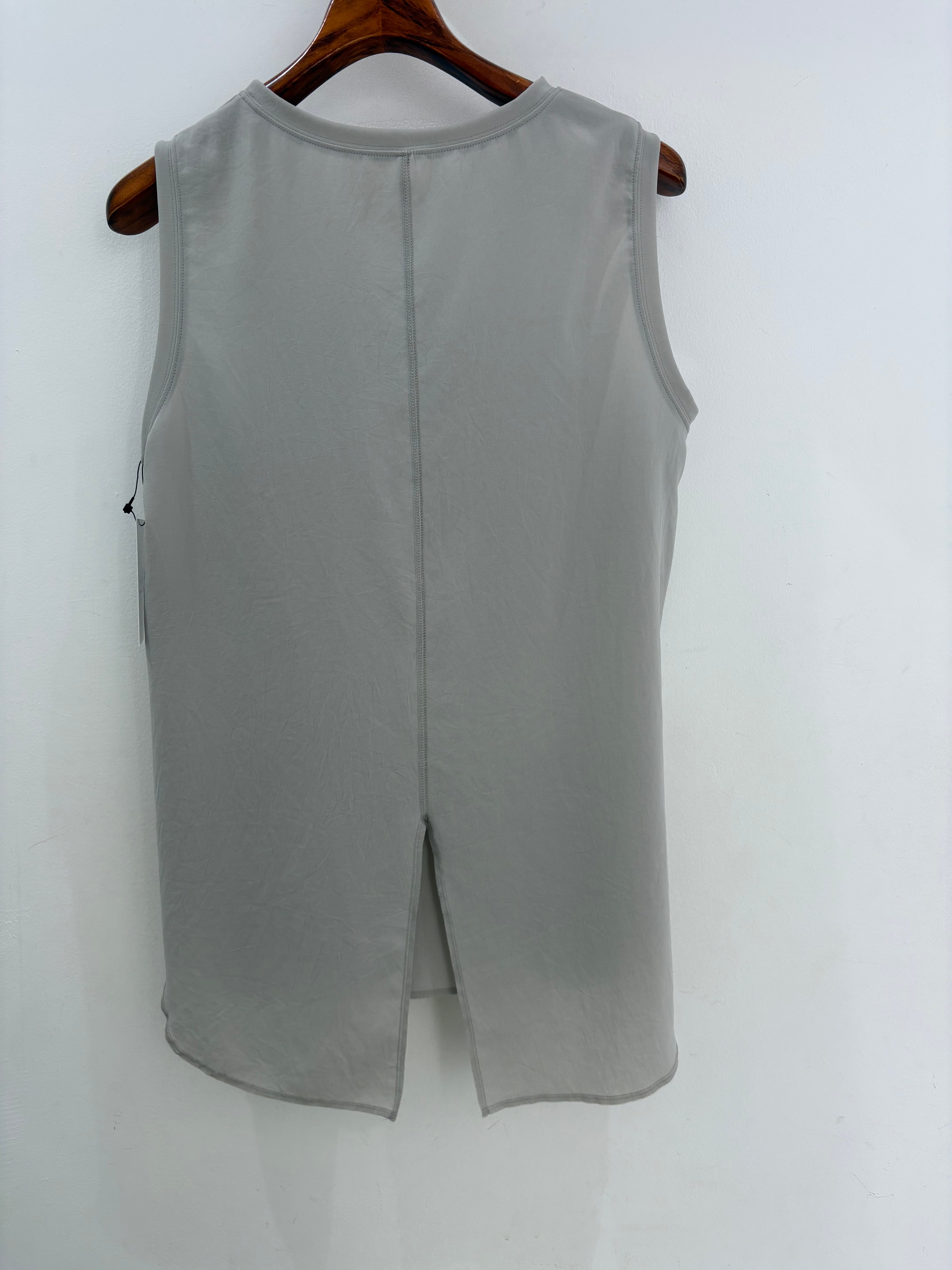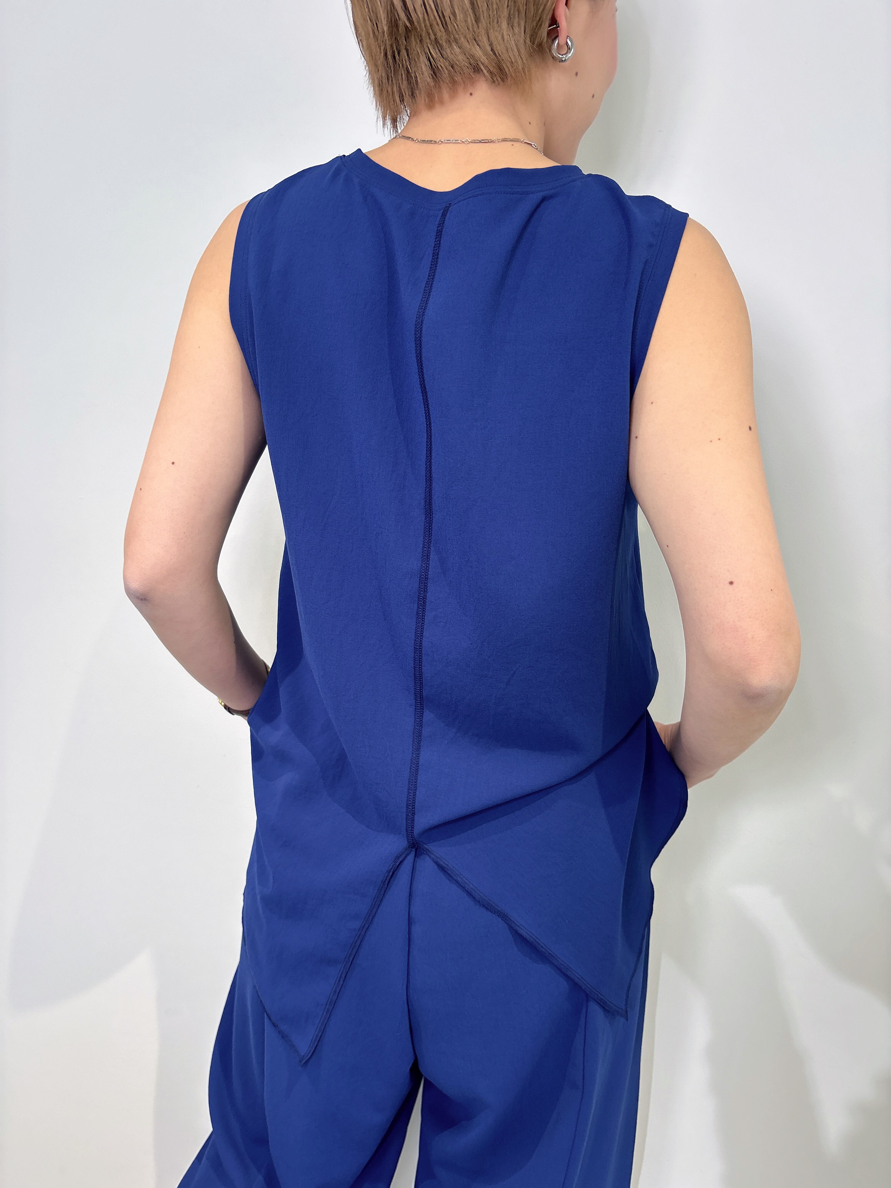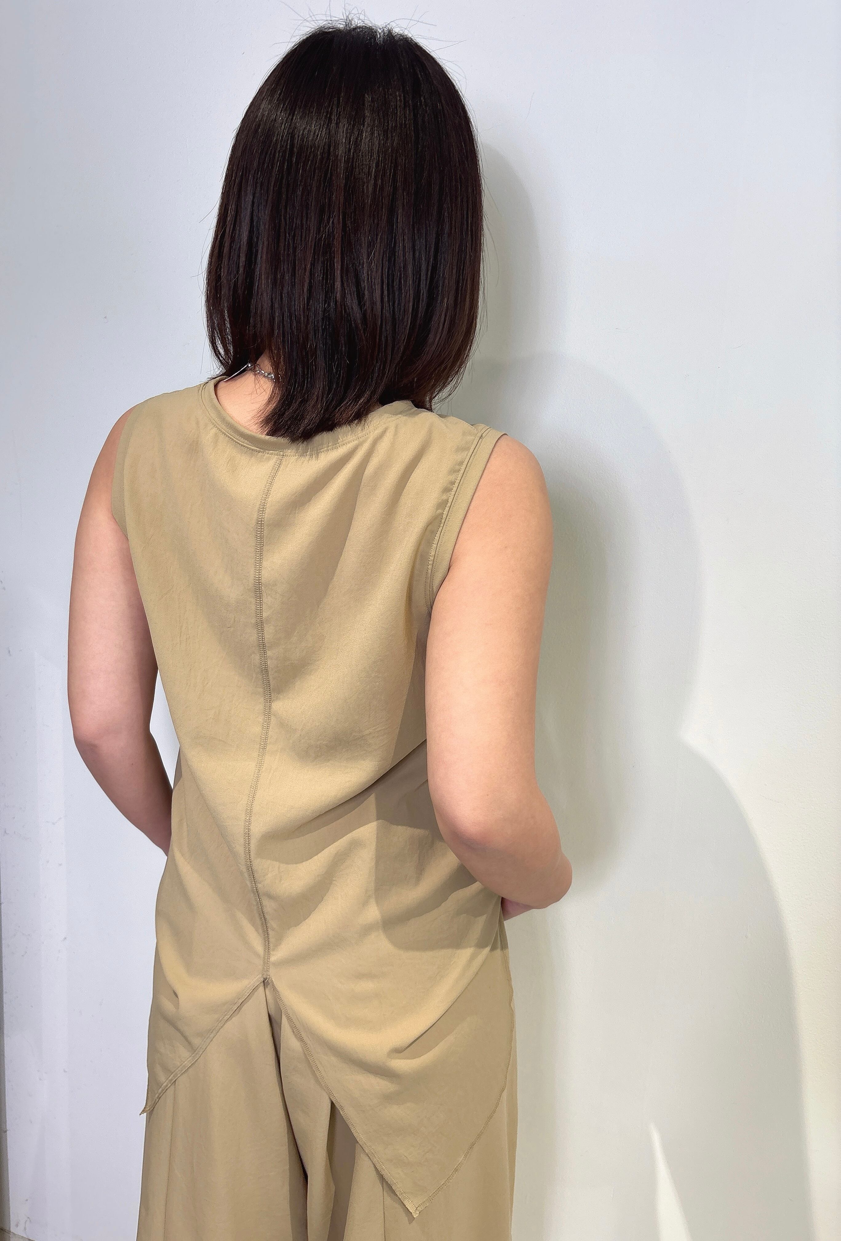 ・肩のラインをスッキリと見せるデザインで、顔周りを引き立てる効果も魅力。シンプルながら、背中のスリットでさりげないおしゃれを演出します。