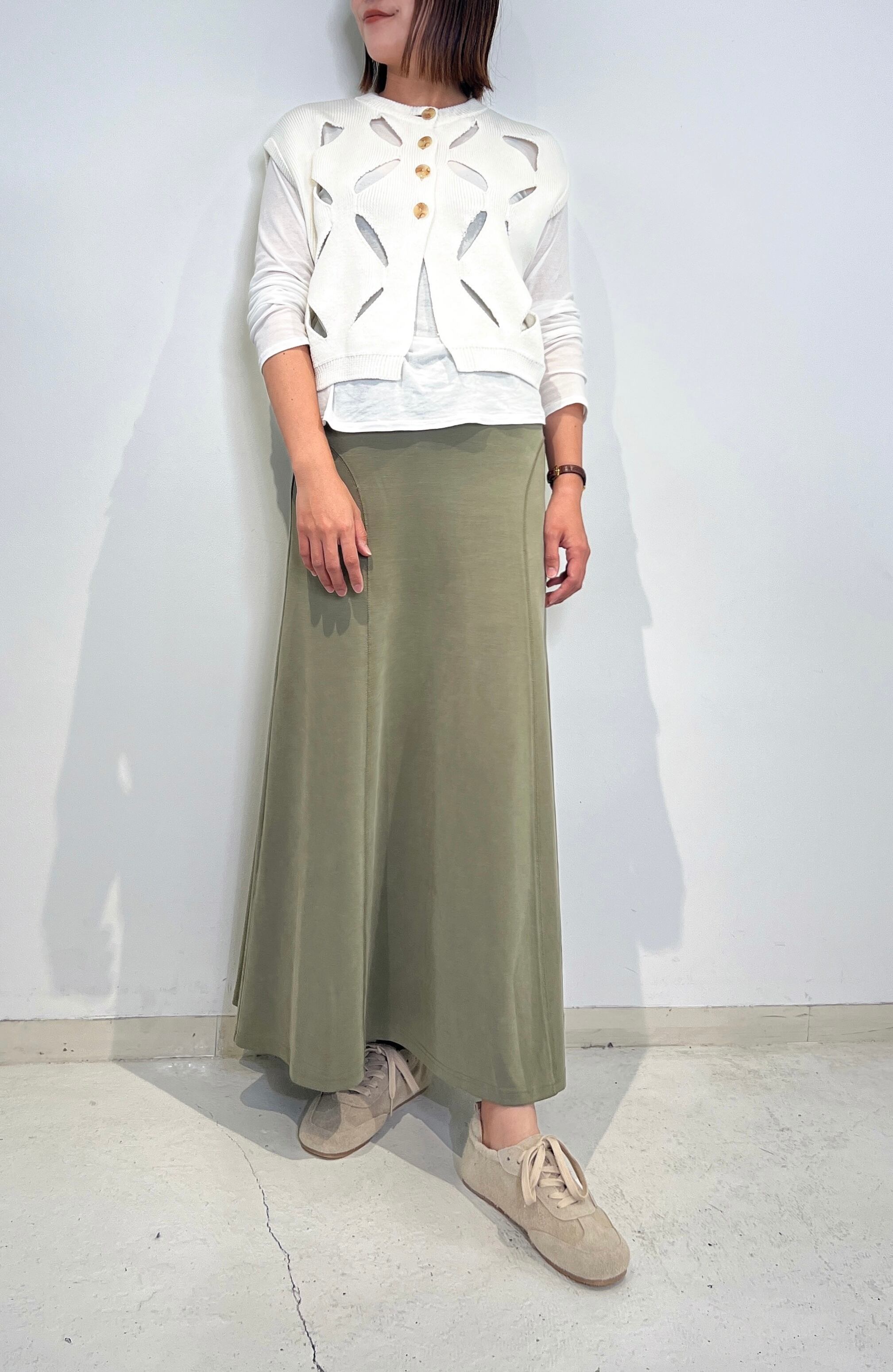 美しく落ち感のあるシルエットが魅力のFIBRIL JERSEY SKIRT。