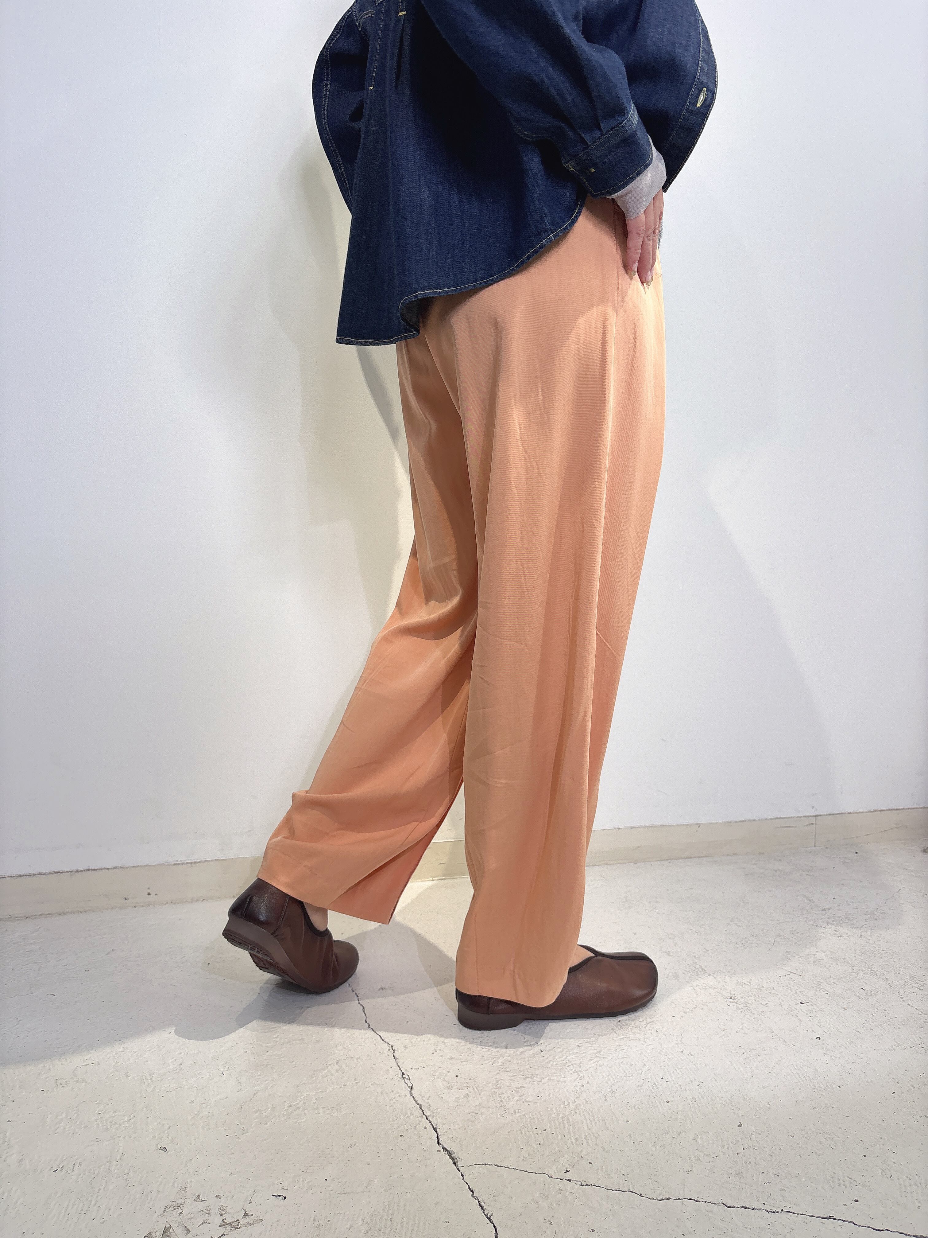 フロントにはタックを施しリラックス感がありながら、中央の太めピンタックで美脚効果も感じていただけます。
