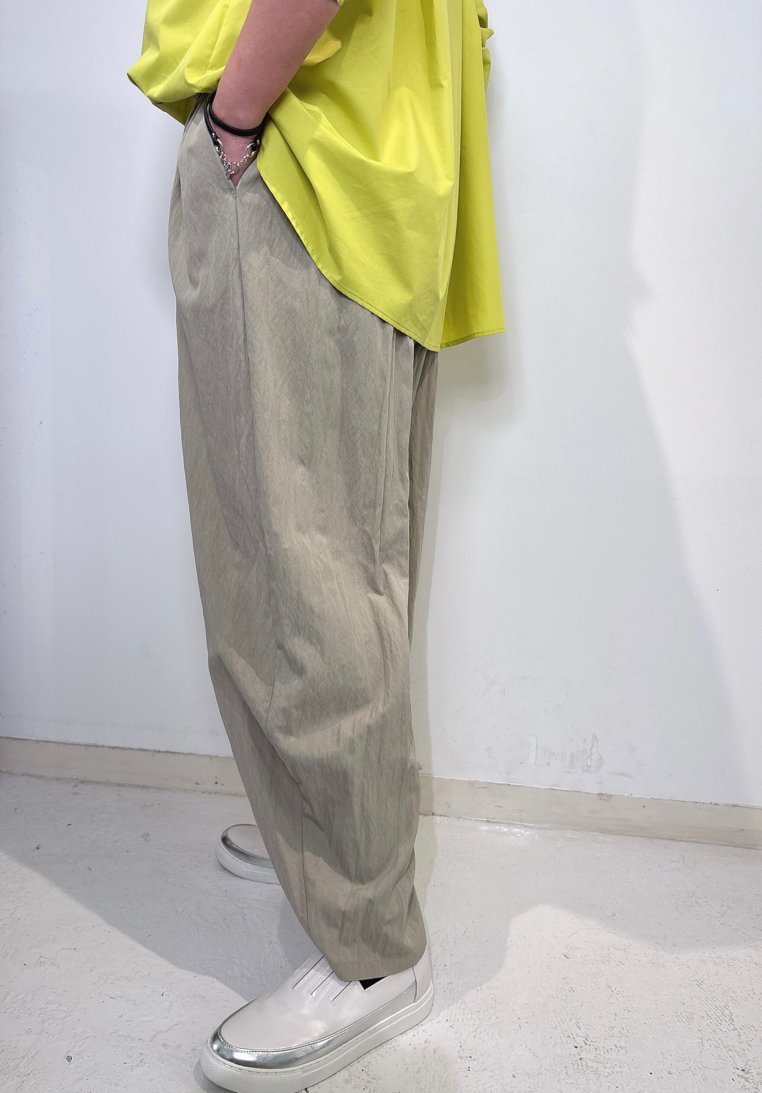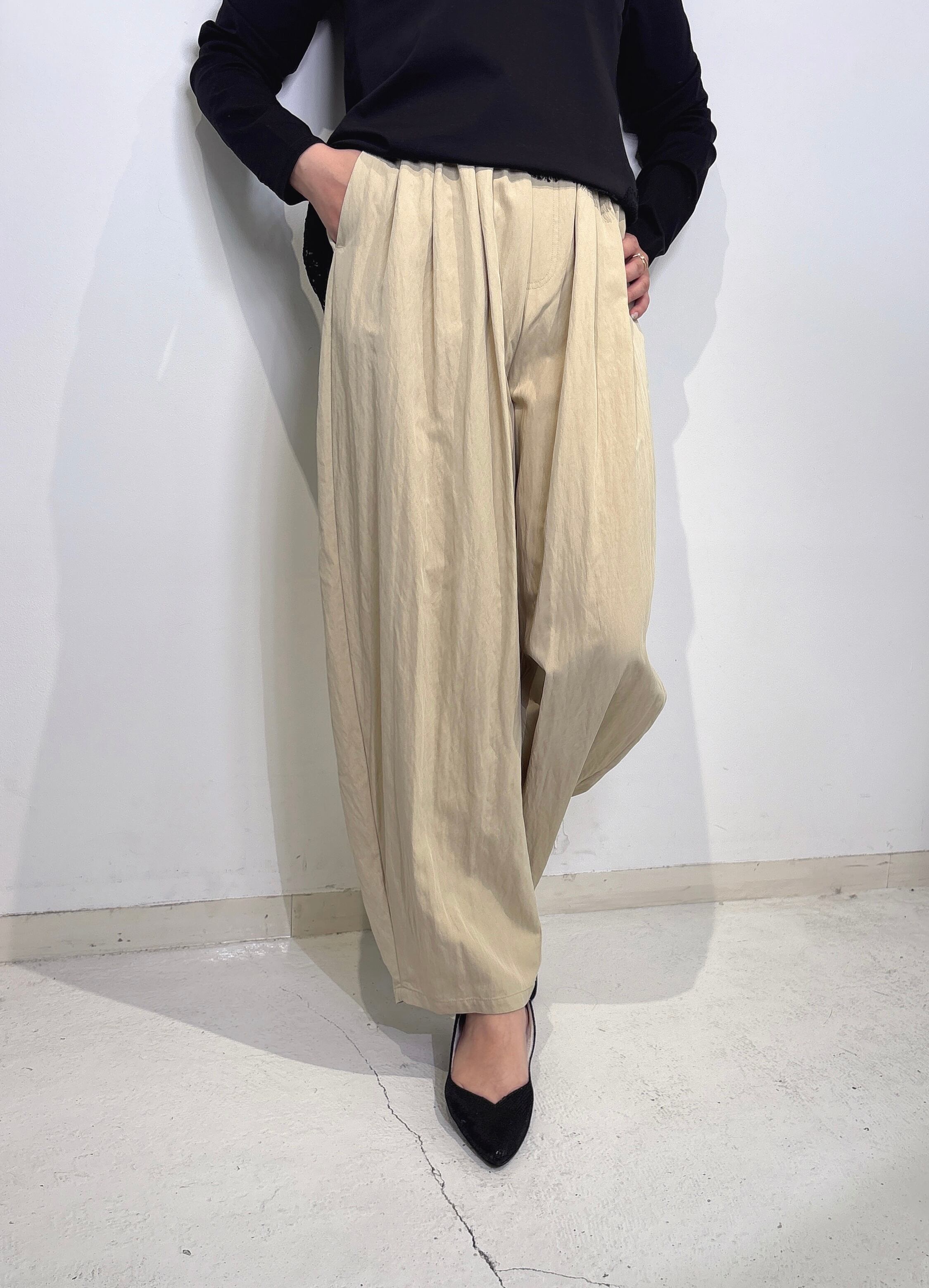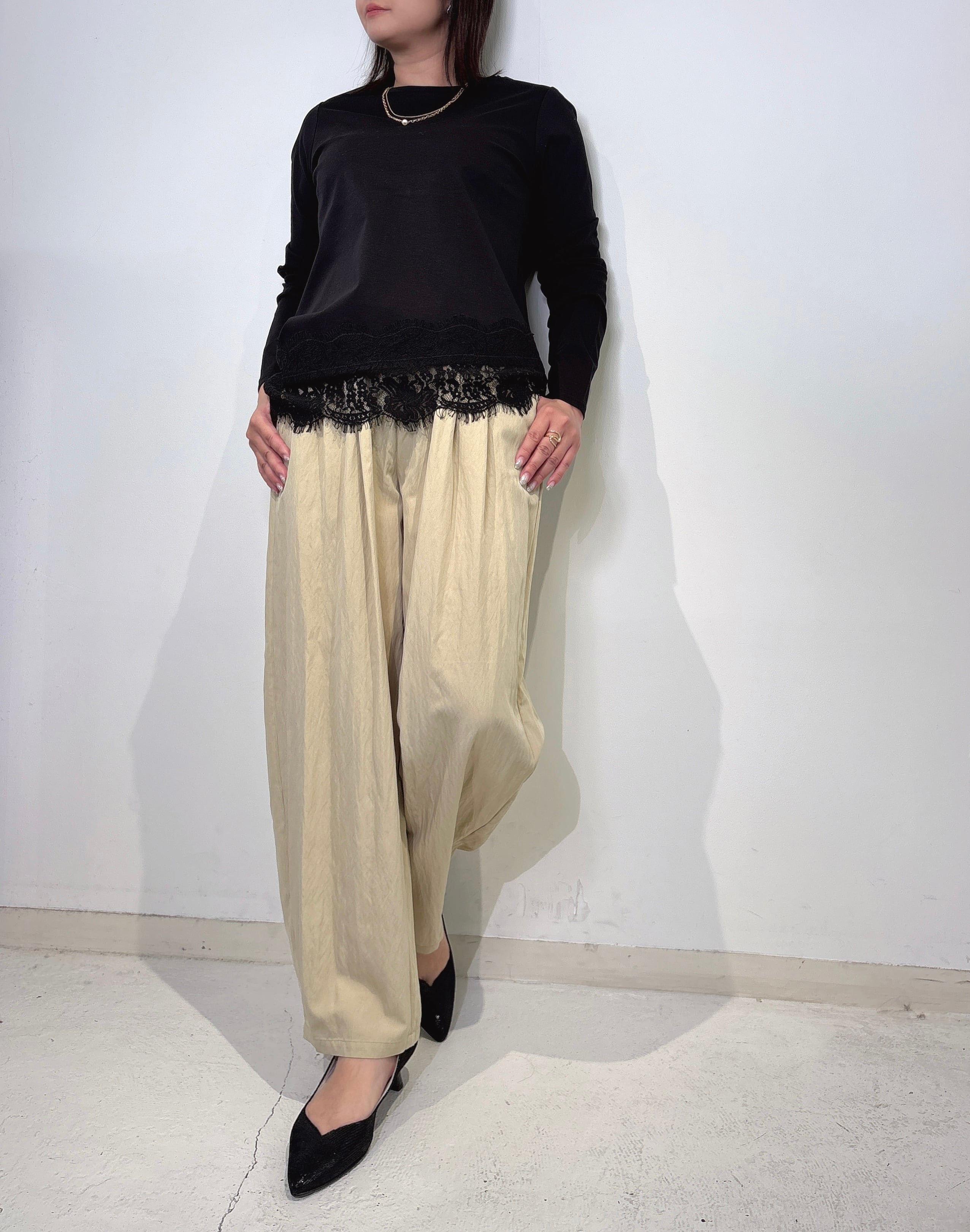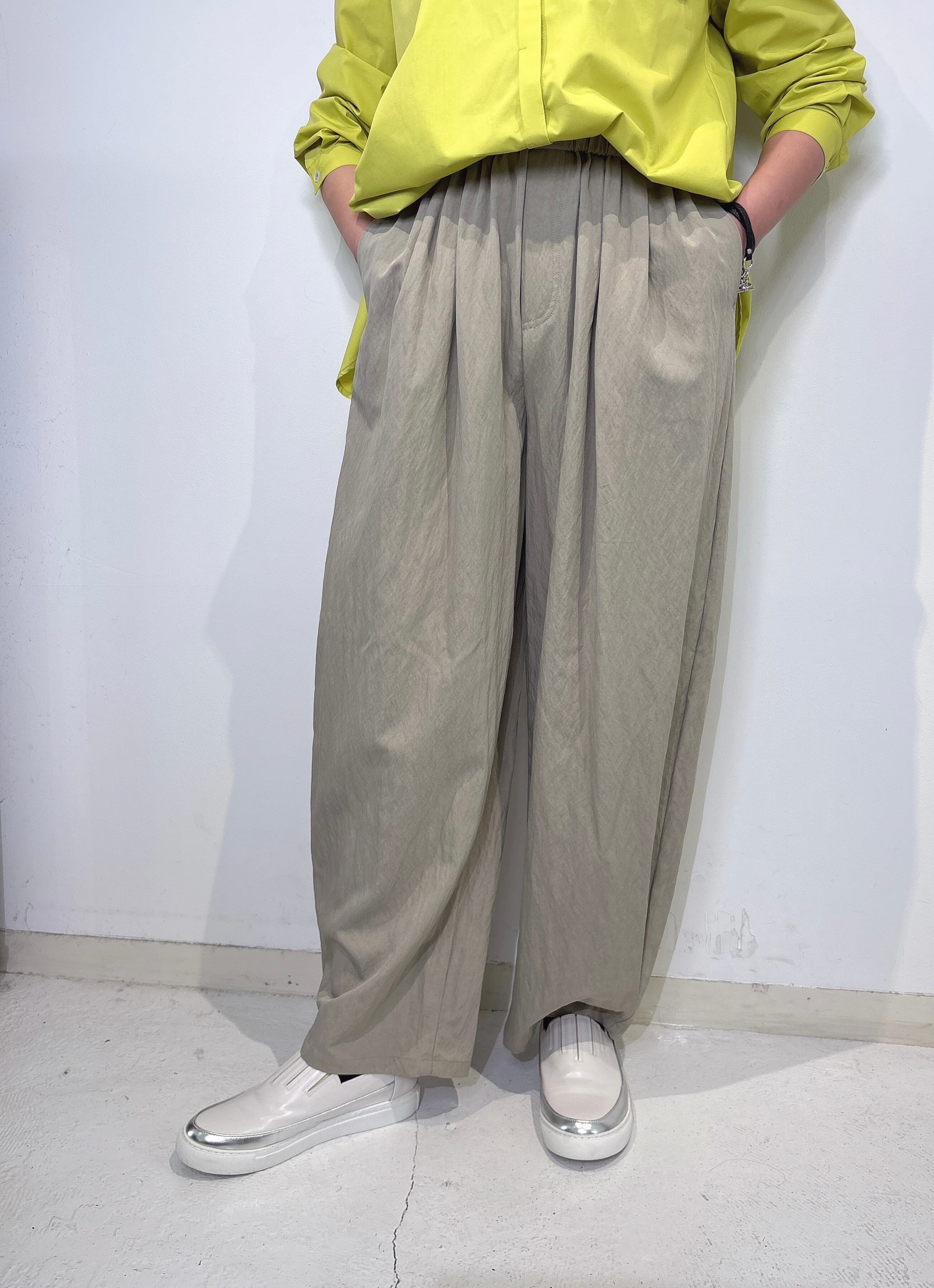 ラインを拾わないルーズなサイズ感でありながら裾中は狭めなので、足元が重く見えずすっきりしたシルエットに仕上げています。