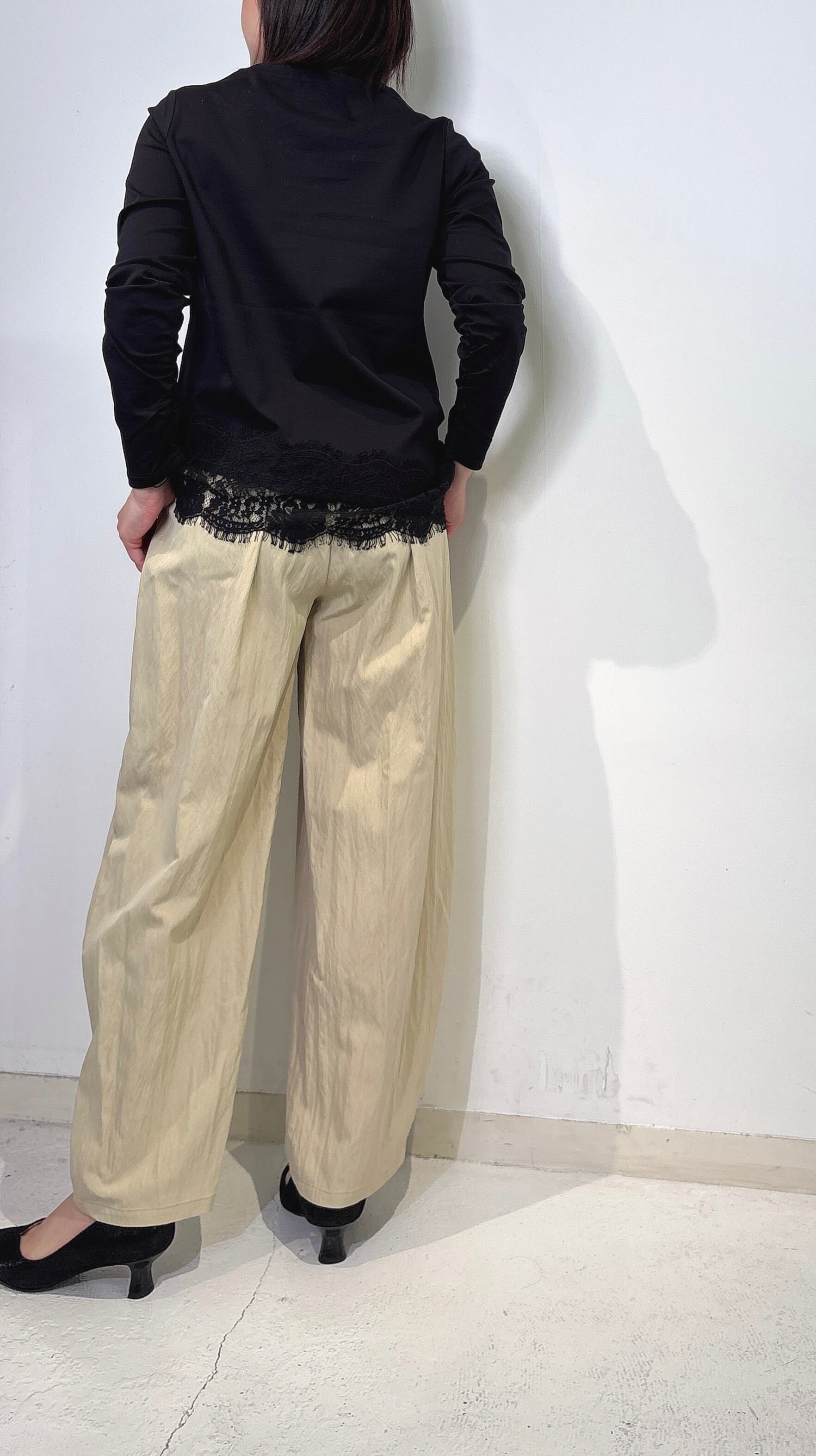 ・アシンメトリーに配置した裾レースが、シンプルなプルオーバーに華やぎを添える一枚。