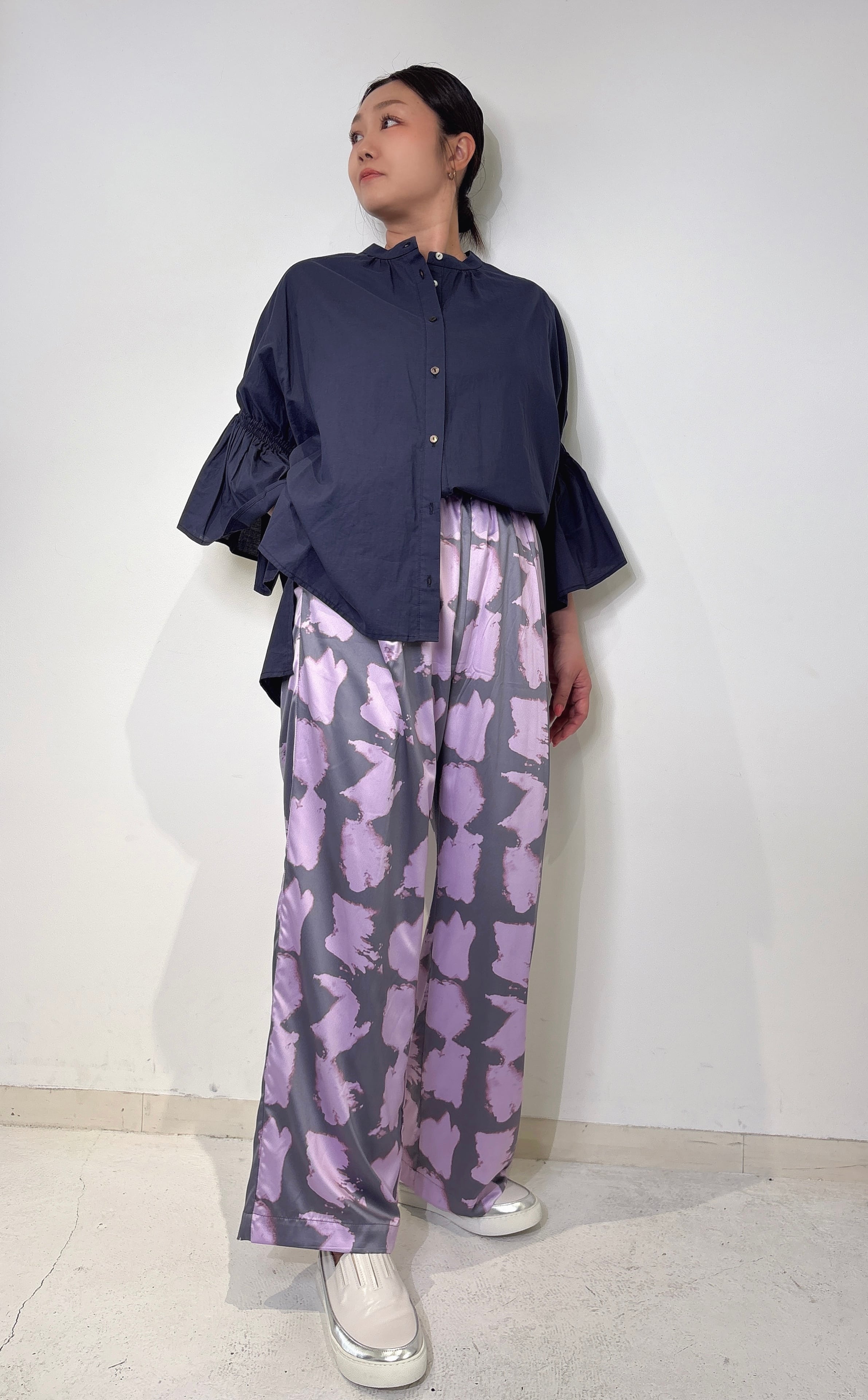 綿100%の軽やかな素材で、さらりとした肌触り。動きに合わせて流れる生地感は、着心地も抜群で、デイリー使いはもちろん、オフィスシーンや特別なイベントにも最適です。