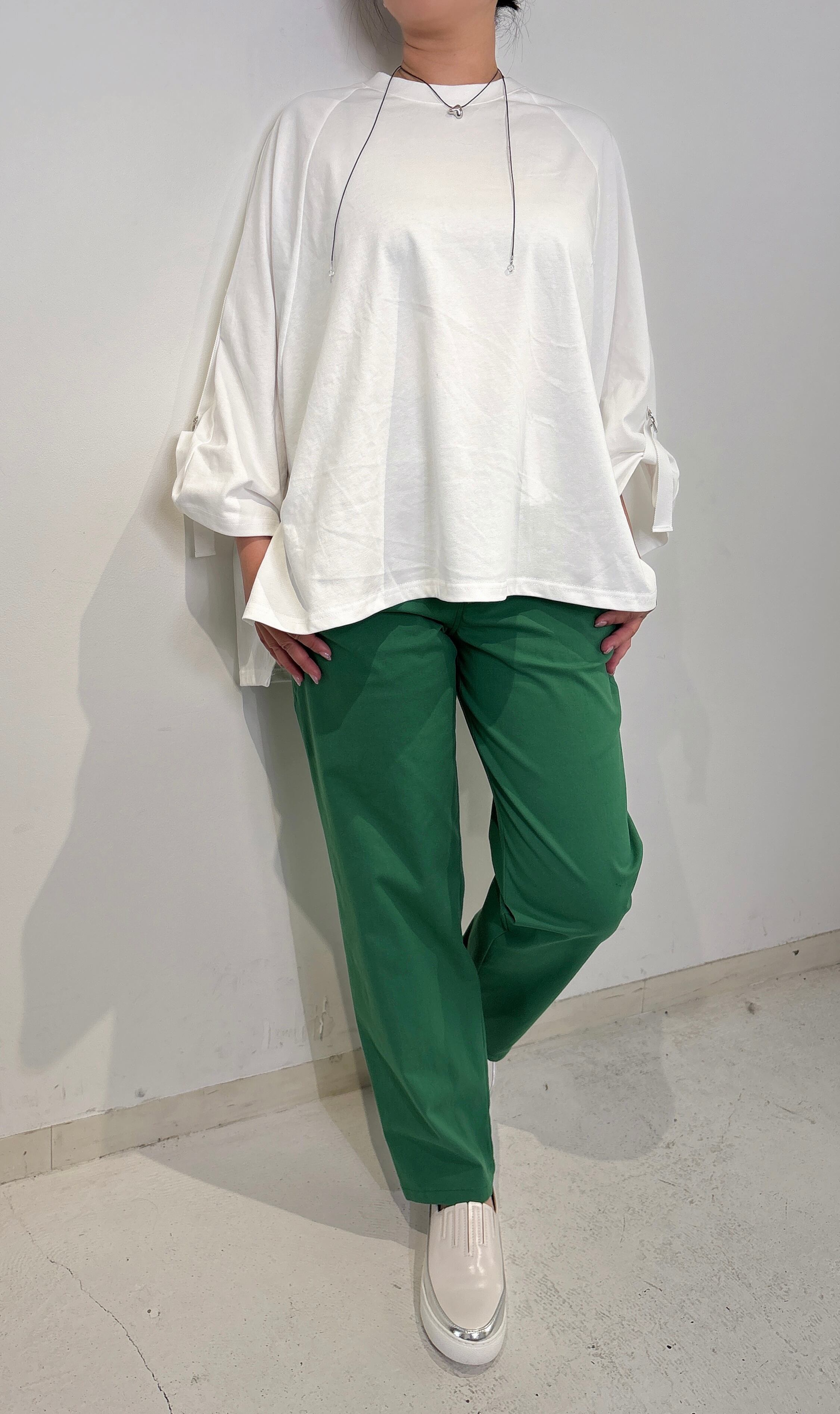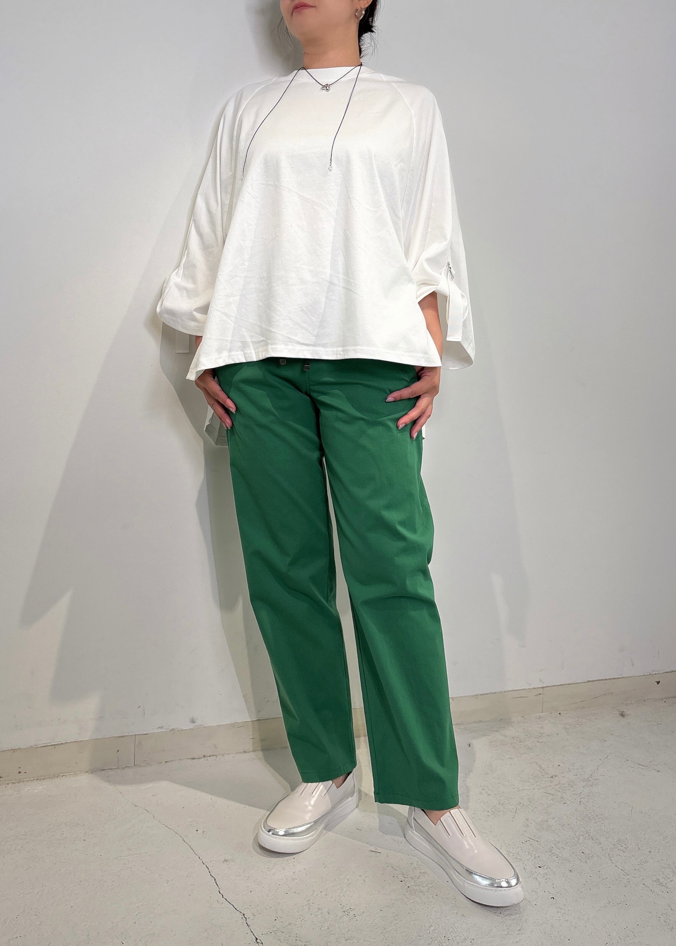 スッキリとしたテーパードシルエットが、脚長効果を引き出し、さまざまなコーディネートにマッチします。