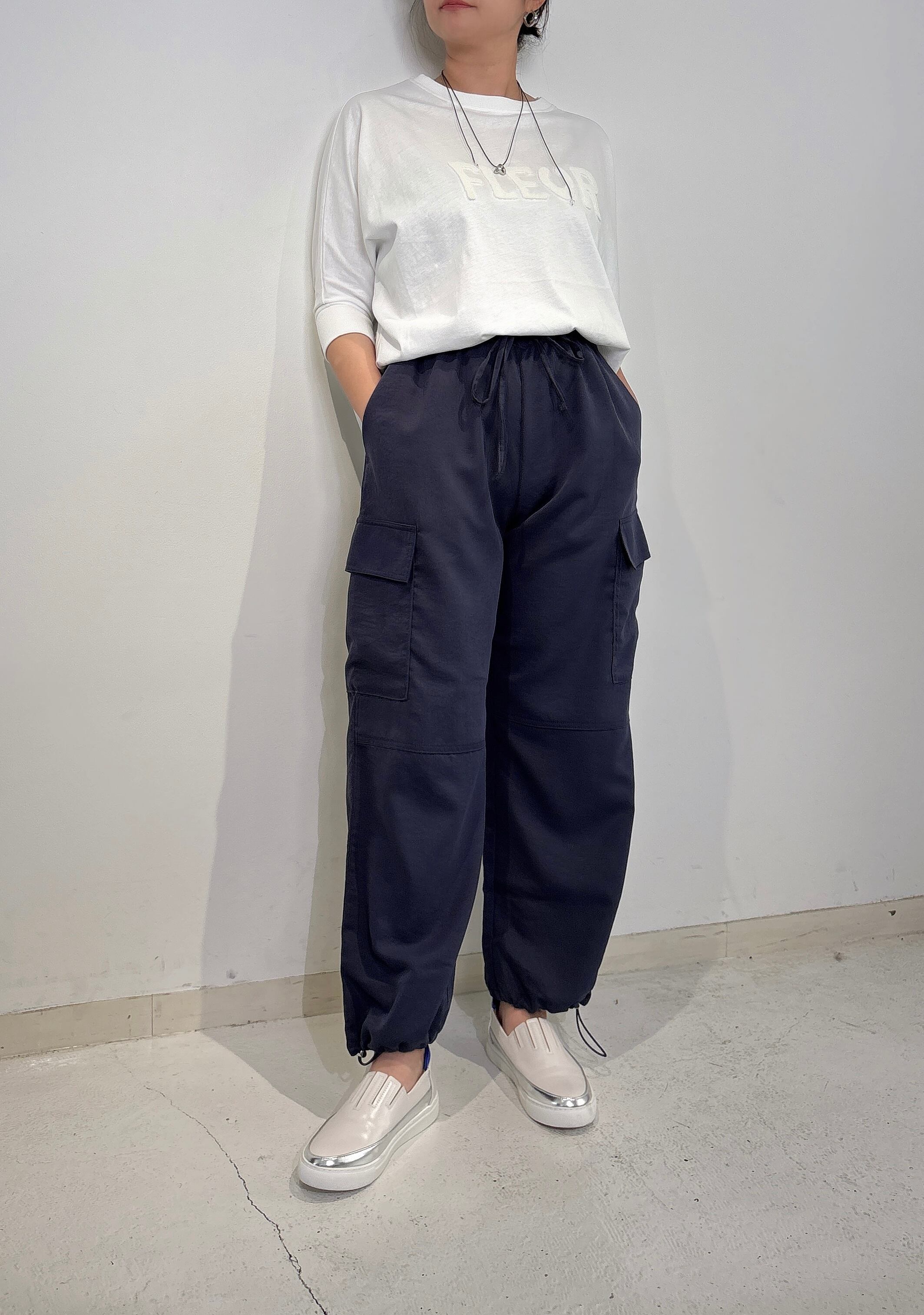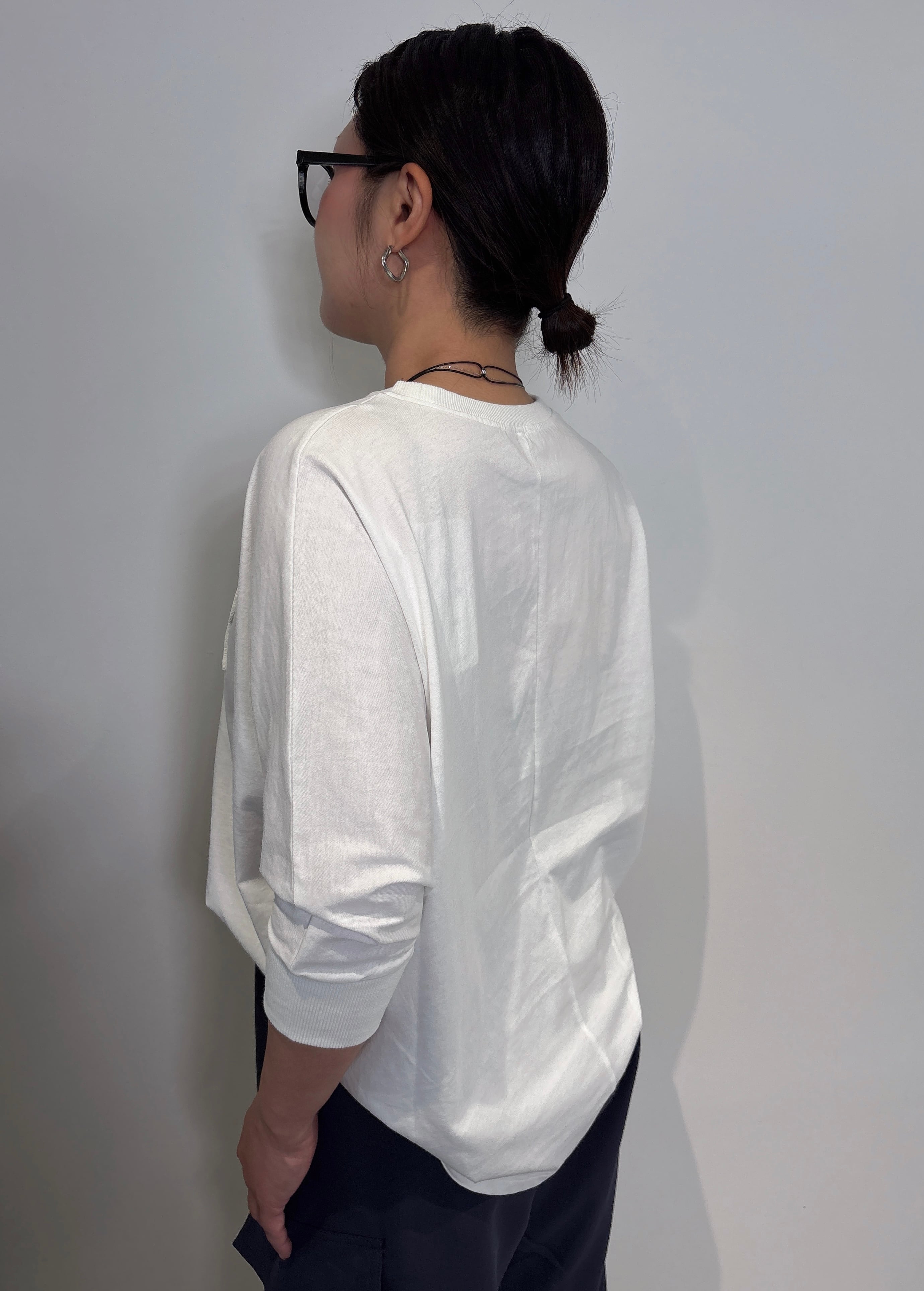 独特のロゴ刺繍が目を引き、デイリーはもちろん、お出かけにもぴったりな一着です。軽やかな7分袖が、季節の変わり目にも重宝し、様々なスタイルに対応します。
