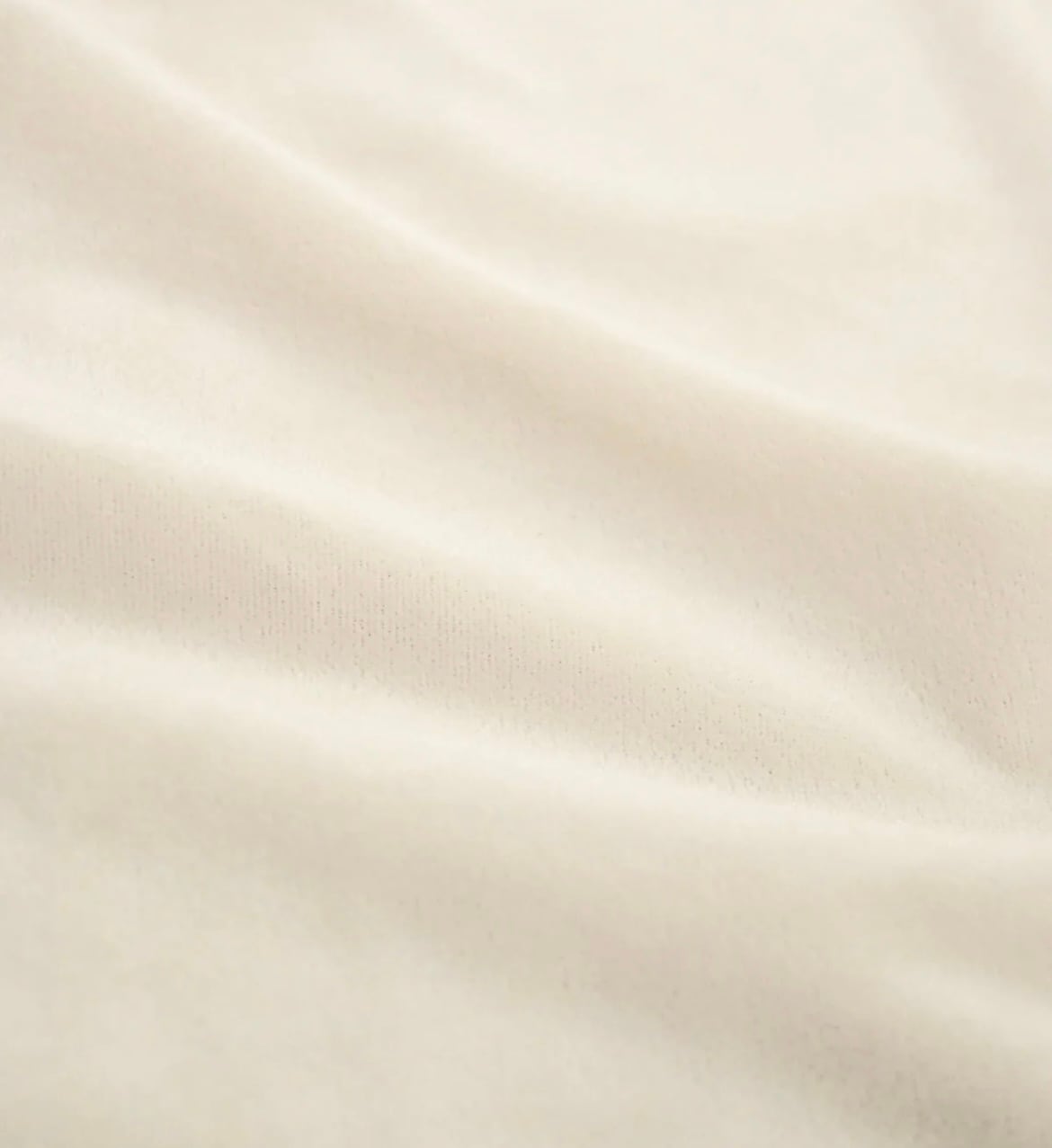 ハリがありソフトな肌触りのシアートリコットベロアを施したハイネックプルオーバー。